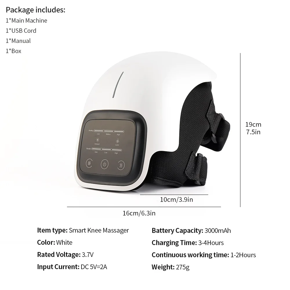 4 в 1 массажер для колена. Вибрация, нагрев, инфракрасный и лазер объединены, чтобы обеспечить облегчение коленей, слив их выпота и омолаживающий их. Инфракрасное и лазерное излучение. Двойной светильник может достигать глубоких слоев колена для улучшения кровообращения, снятия жесткости и повышения жизненной силы. Равномерный горячий компресс. Может генерировать равномерное тепло, чтобы активировать несколько ключевых узлов суставов и рассеять холодность, тем самым достигая полного эффекта. Высокочастотная вибрация. Может имитировать человеческий массаж, выполняя всесторонний массаж до колен. Он эффективно отпускает давление. Удобно использовать. Он оснащен увеличенным светодиодный экраном, беспроводным дизайном, контуром на 100% колено, портом Type-C, регулируемой липучкой и четким индикатором.Управление