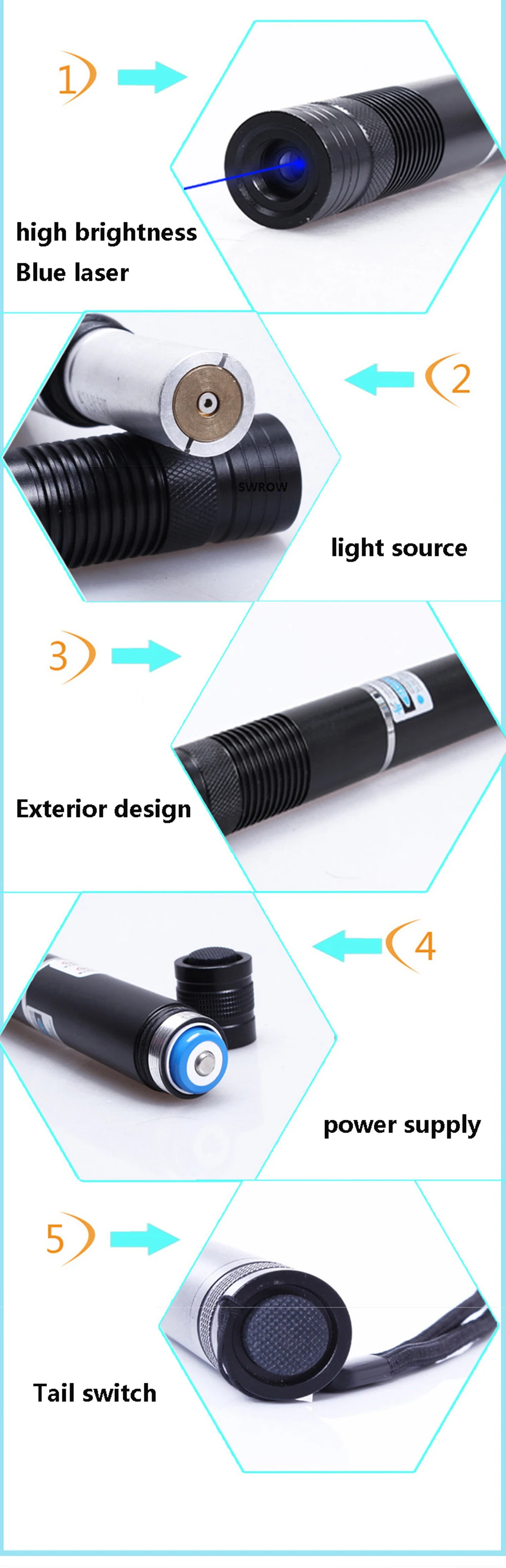 * Модель: 008 (Синяя лазерная указка)
