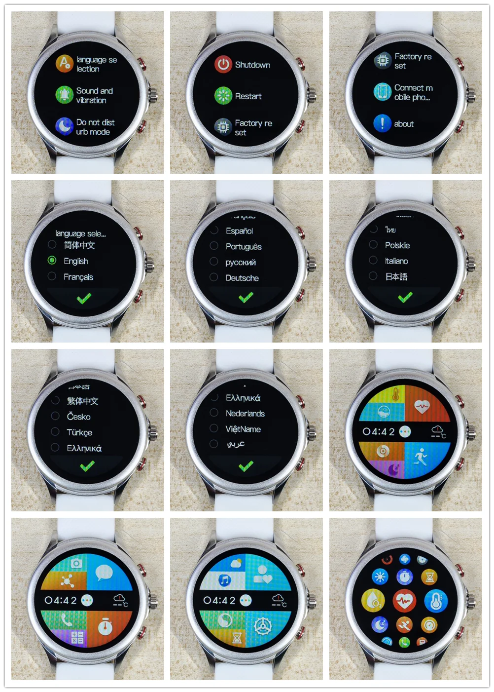 Язык часов:Китайский, английский, французский, немецкий, японский, испанский, итальянский, русский, чешский, португальский, турецкий, греческий, вьетнамский, тайский, арабский, польский, голландский.