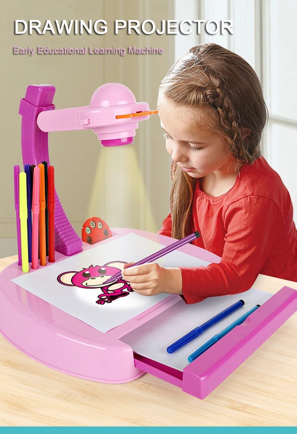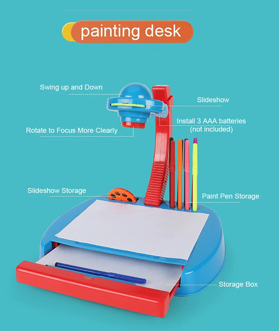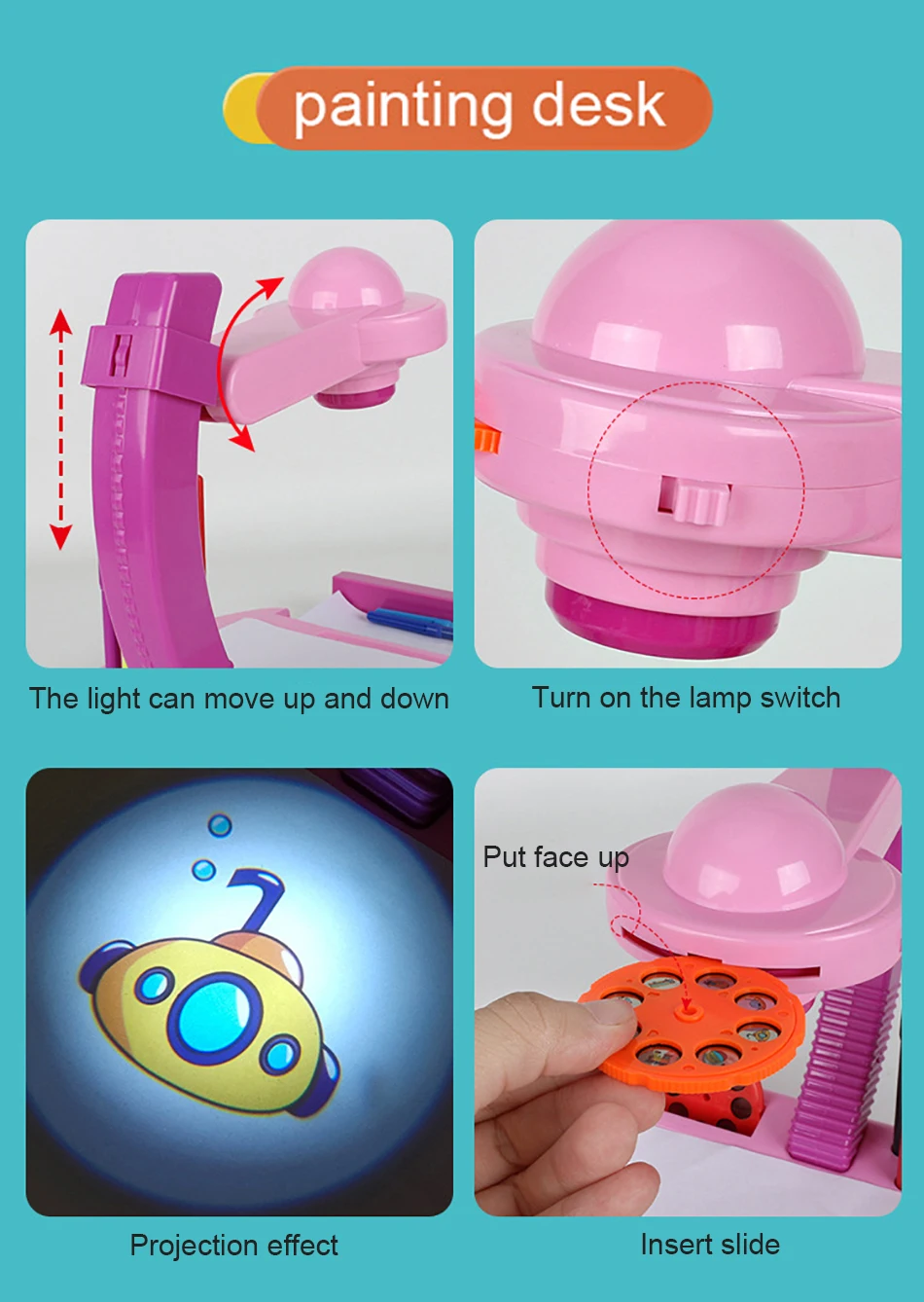 Наша проекционная доска оснащена регулируемой проекционной лампой и тремя направляющими, включая 24 различных интересного узора. Кроме того, есть дизайн ящика и выскользнуть хранения, что делает его удобным в использовании.