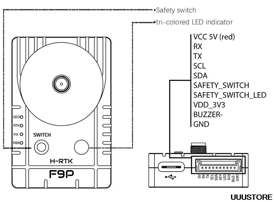 H-RTK F9P является последней высокоточной системой позиционирования GNSS от Holybro. Эта система обеспечивает многополосный RTK с быстрым временем конвергенции и надежной производительностью, одновременный прием GPS, ГЛОНАСС, Galileo и BeiDou, И быстрая скорость обновления для высокодинамичных и высокообъемных приложений с точностью до сантиметра. Он использует модуль UBLOX F9P, компас IST8310 и светодиодный трехцветный индикатор. Он также имеет интегрированный выключатель безопасности для простой и удобной работы.