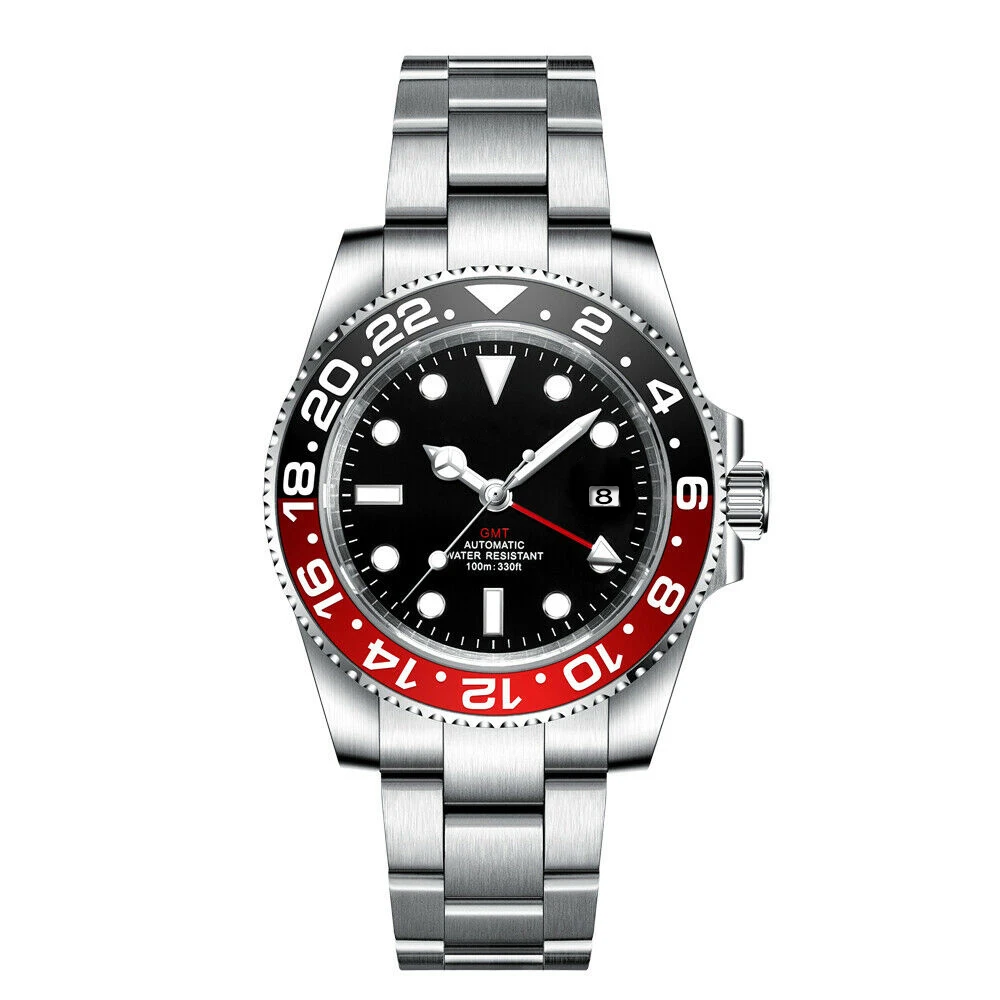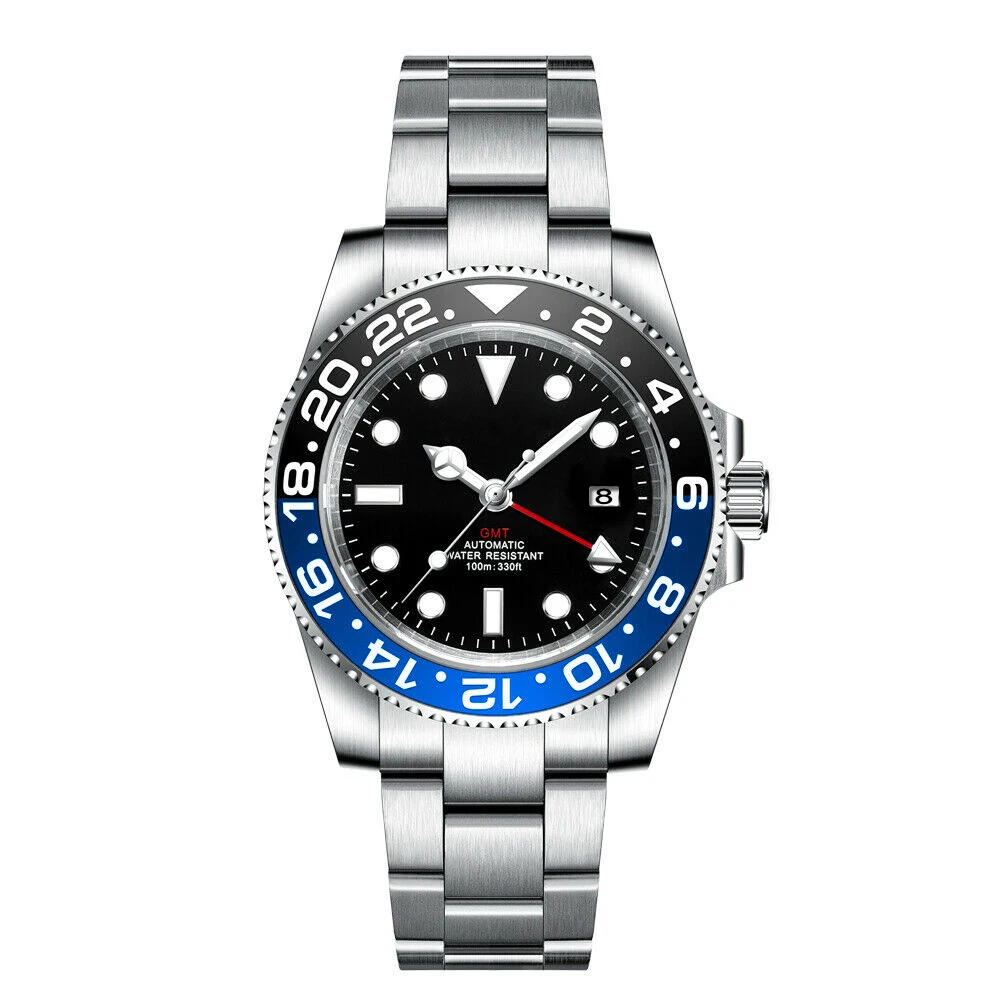 Особенности:Светящиеся makrs, светящиеся стрелки, 10 АТМ, однонаправленный керамический ободок, GMT