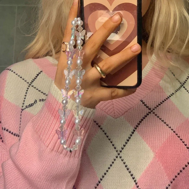Красочная Бабочка Шарм жемчужная цепочка для телефона