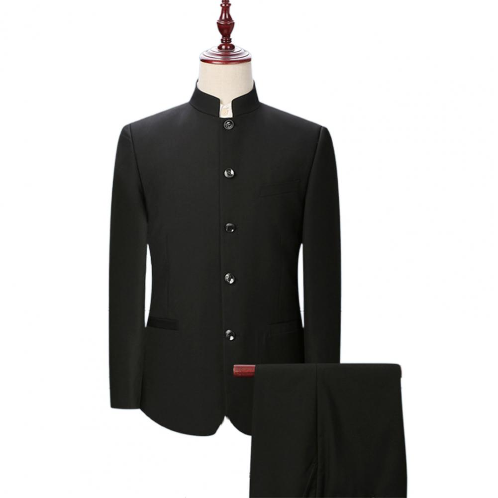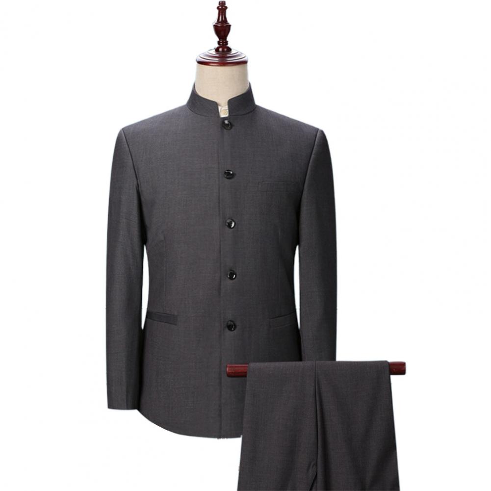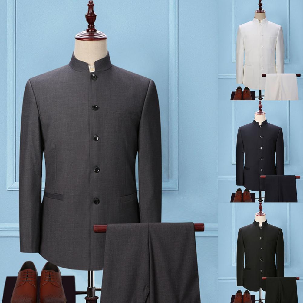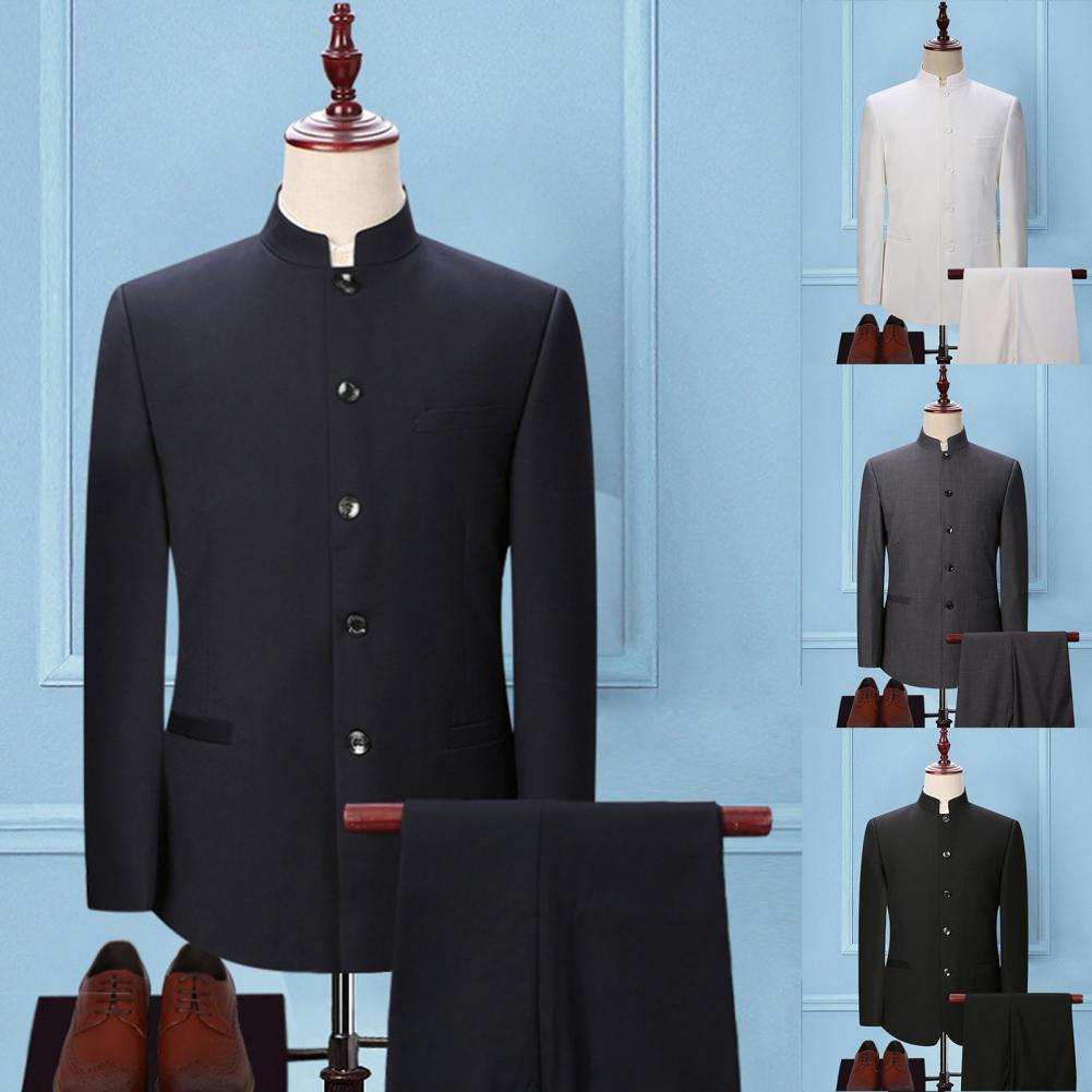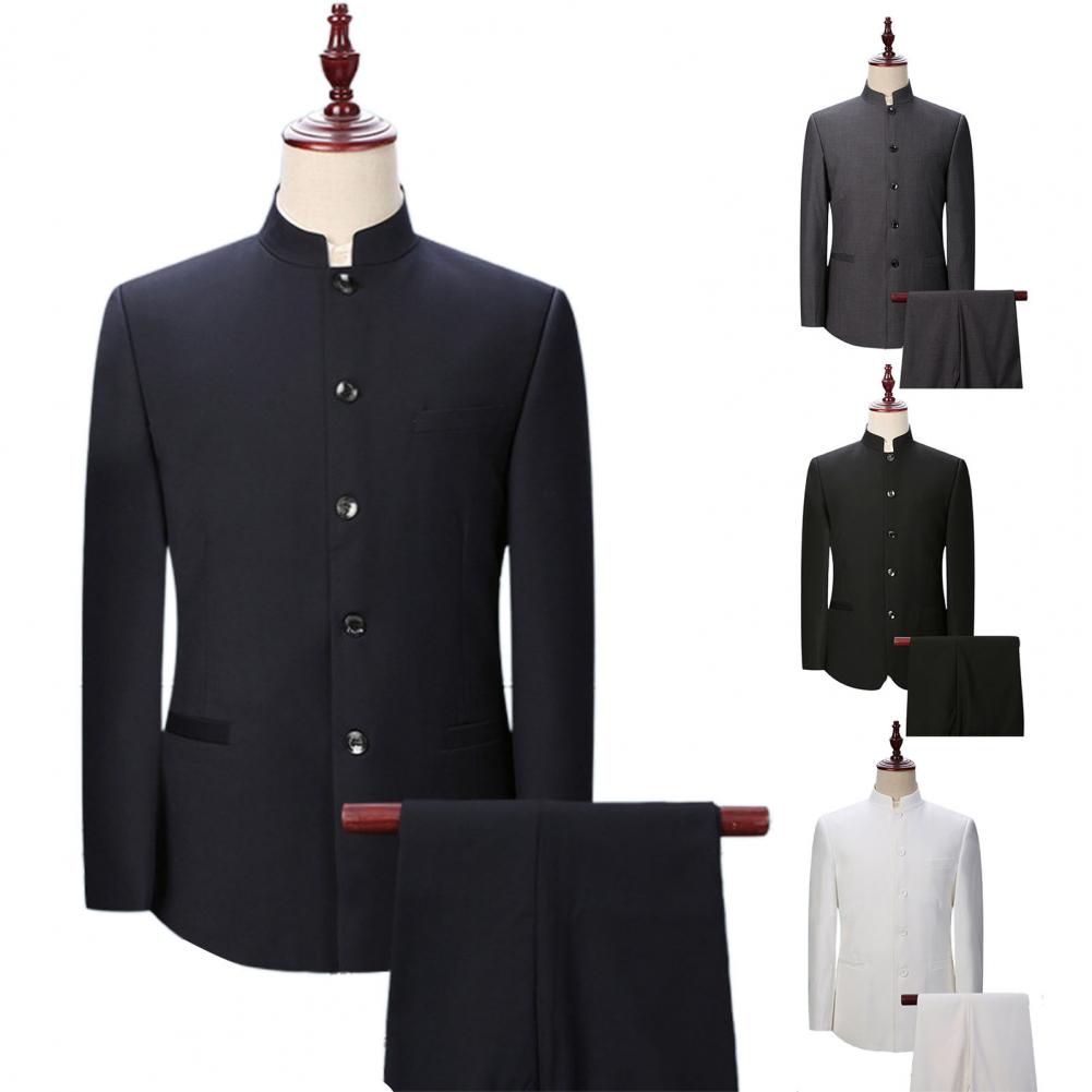 Комплект из 2 предметов, мужской костюм с воротником-стойкой, костюм с пиджаком в китайском стиле, брючный костюм, однобортный костюм, Тонкий Блейзер, комплекты для свадьбы