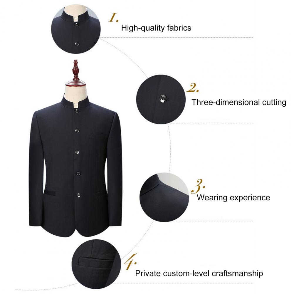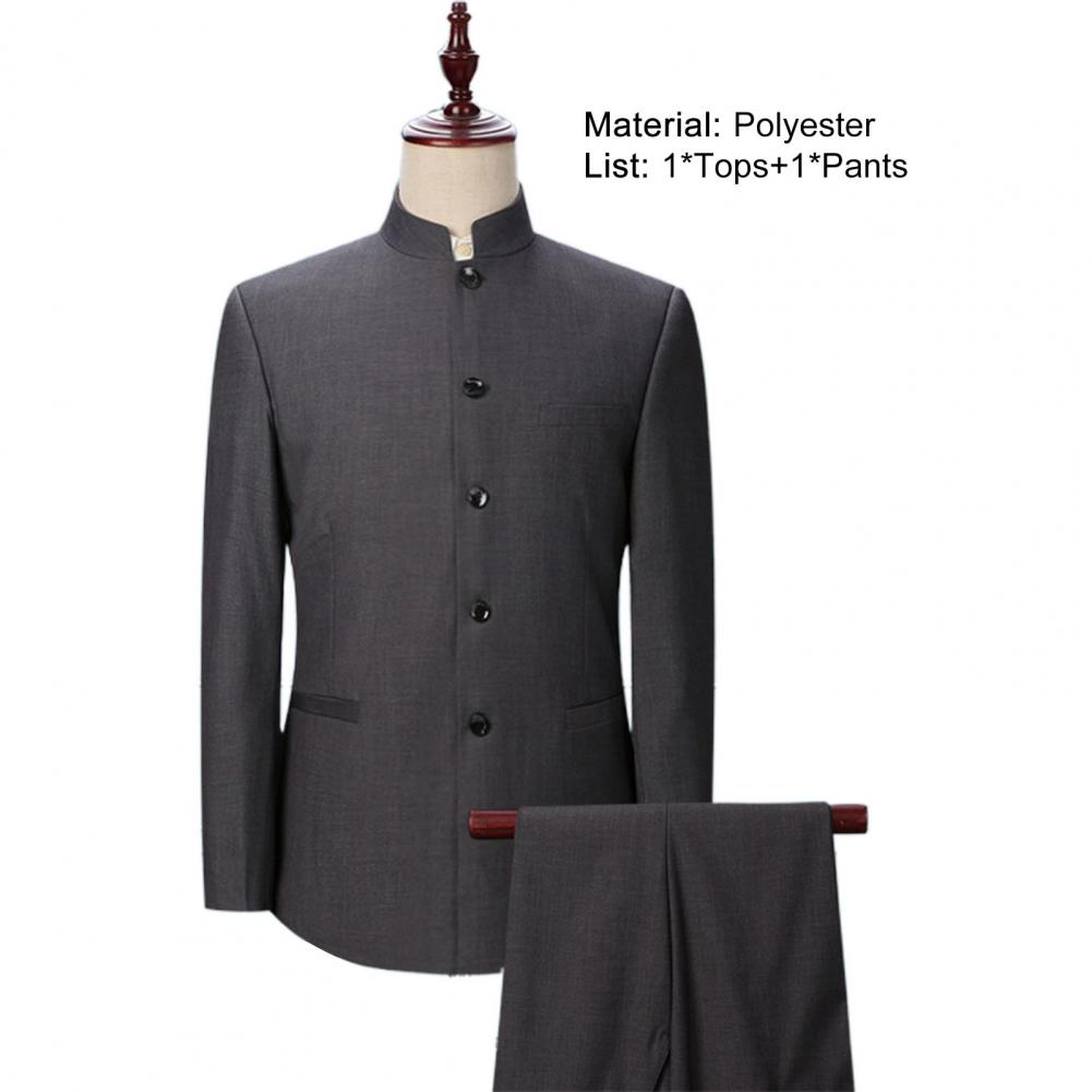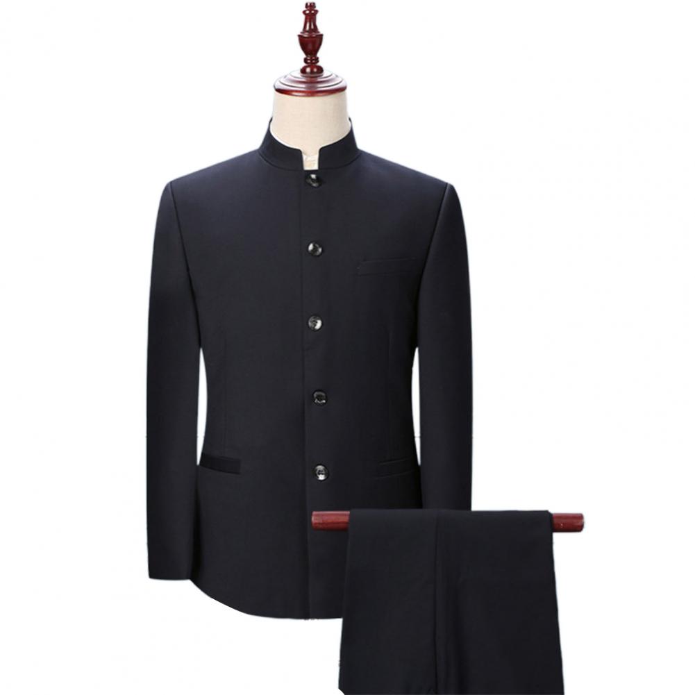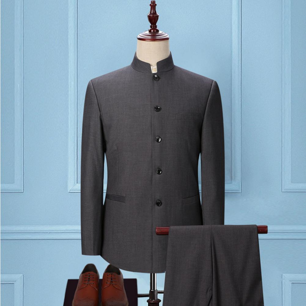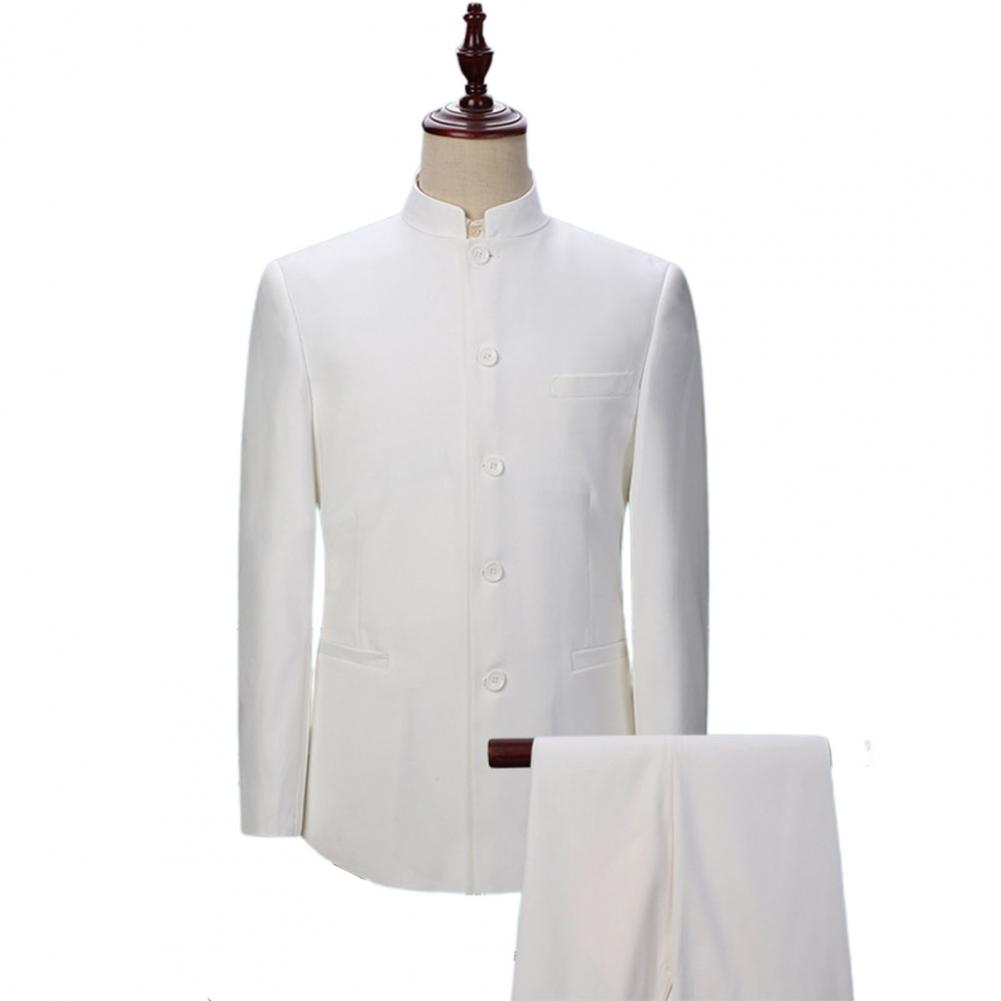Комплект из 2 предметов, мужской костюм с воротником-стойкой, костюм с пиджаком в китайском стиле, брючный костюм, однобортный костюм, Тонкий Блейзер, комплекты для свадьбы
