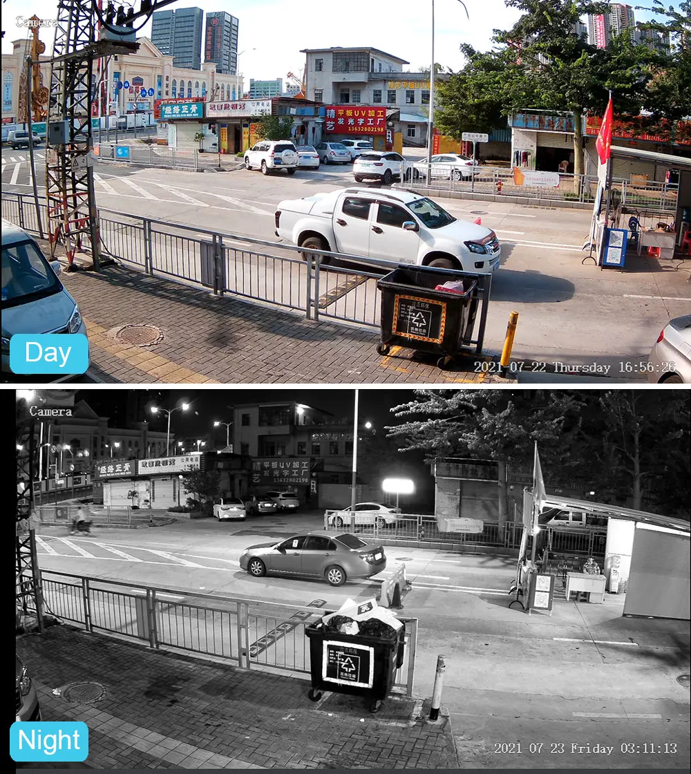 Переключайтесь в режим «ночного видения полного цвета», камера работает с четырьмя белыми лампами, экран монитора-Полноцветная картинка, картинка настоящая и может шокировать вора, эффект дня-это цветная картинка.