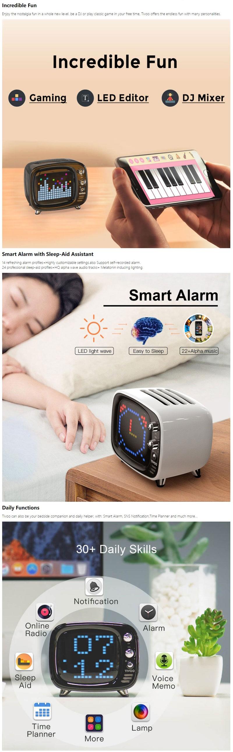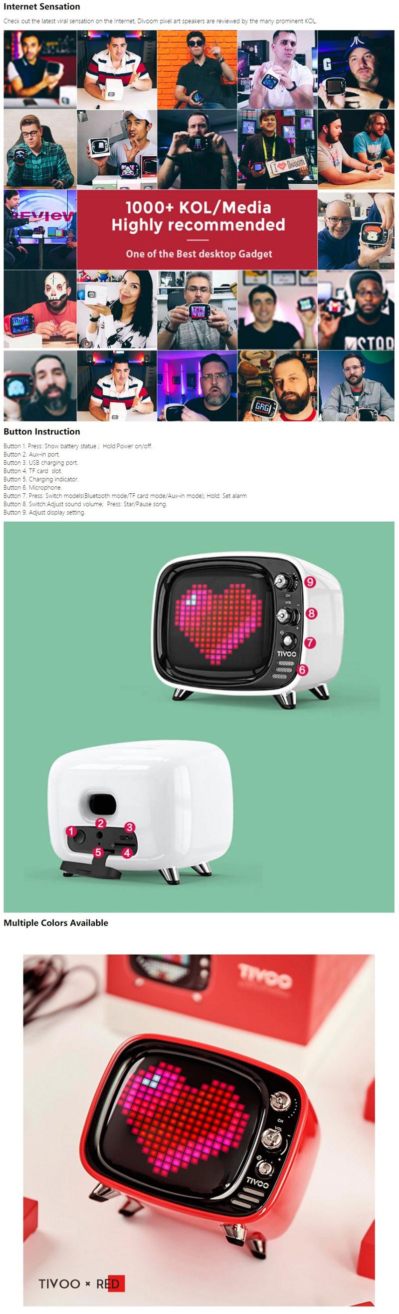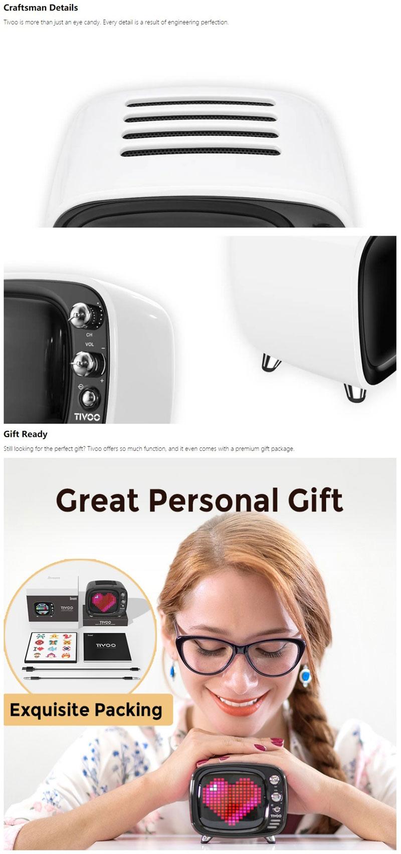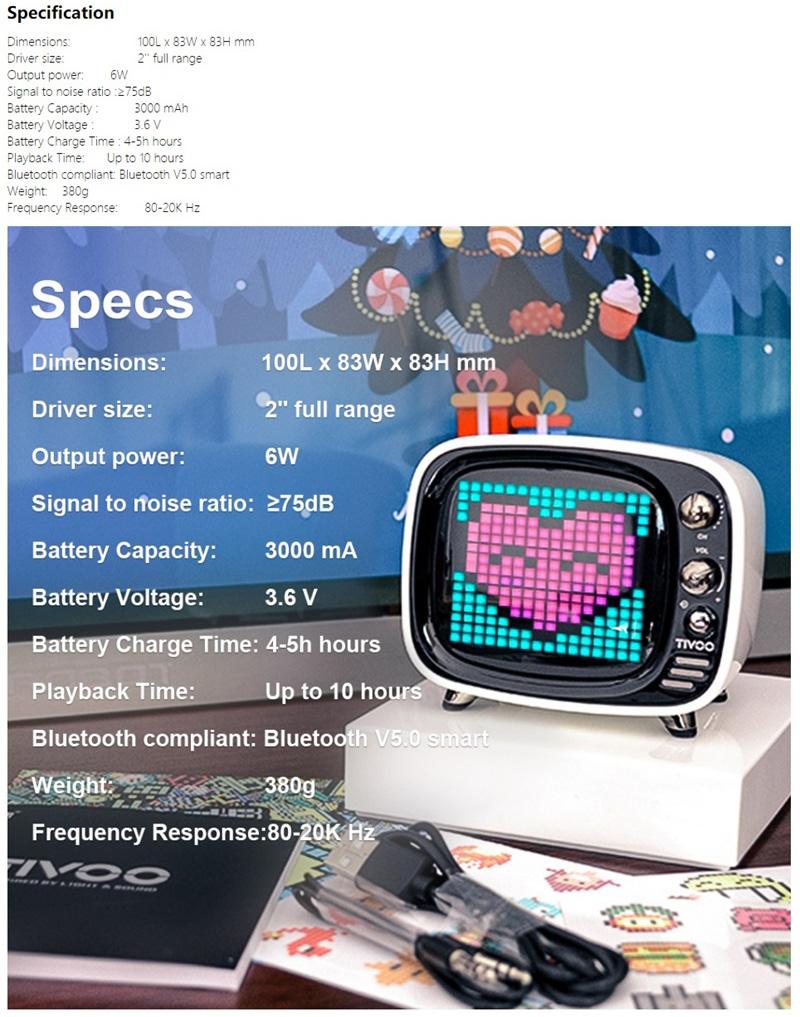 2:Tivoo is equipped with the latest audio technology and unparalleled tuning experience, 6W 360° full range speaker and bass port. Provide the best audio in such a compact body