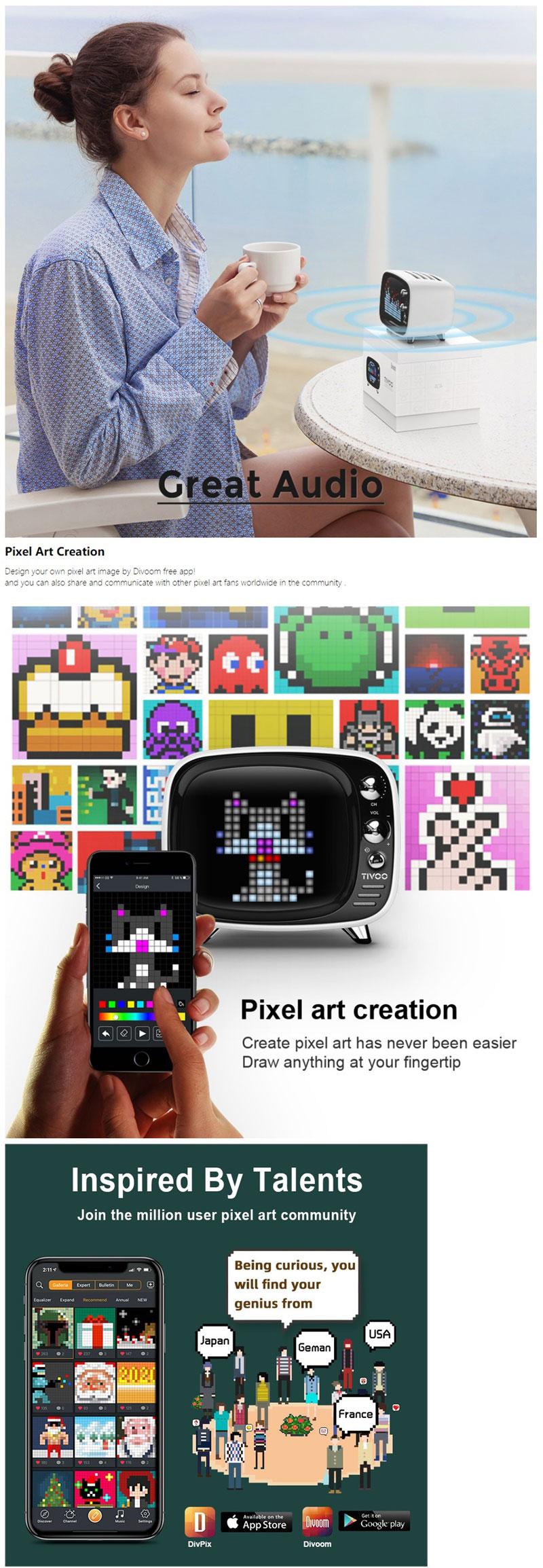 1:Design your own pixel art images through the Divoom free app! You can also share and communicate with other pixel art fans in the community.