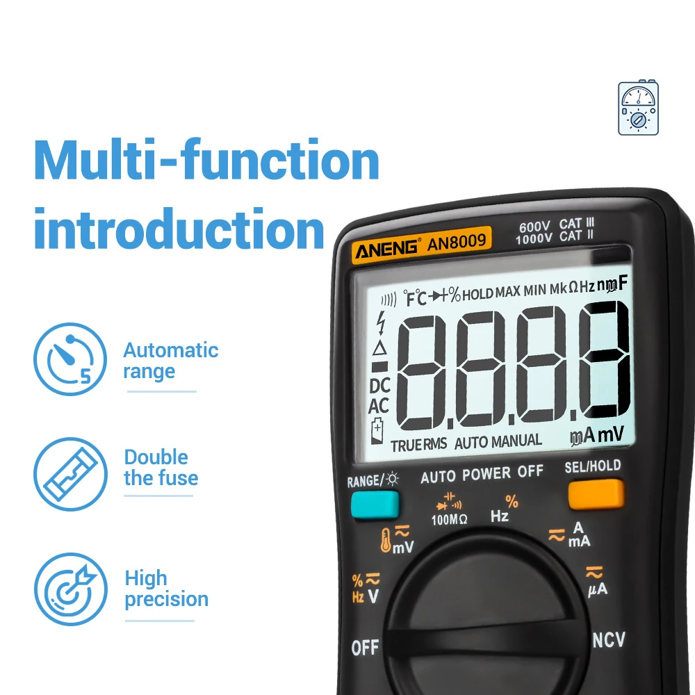 9.999mV/99.99mV/999.9mV/9,999 V/99,99 V/750ACV(999.9DCV)