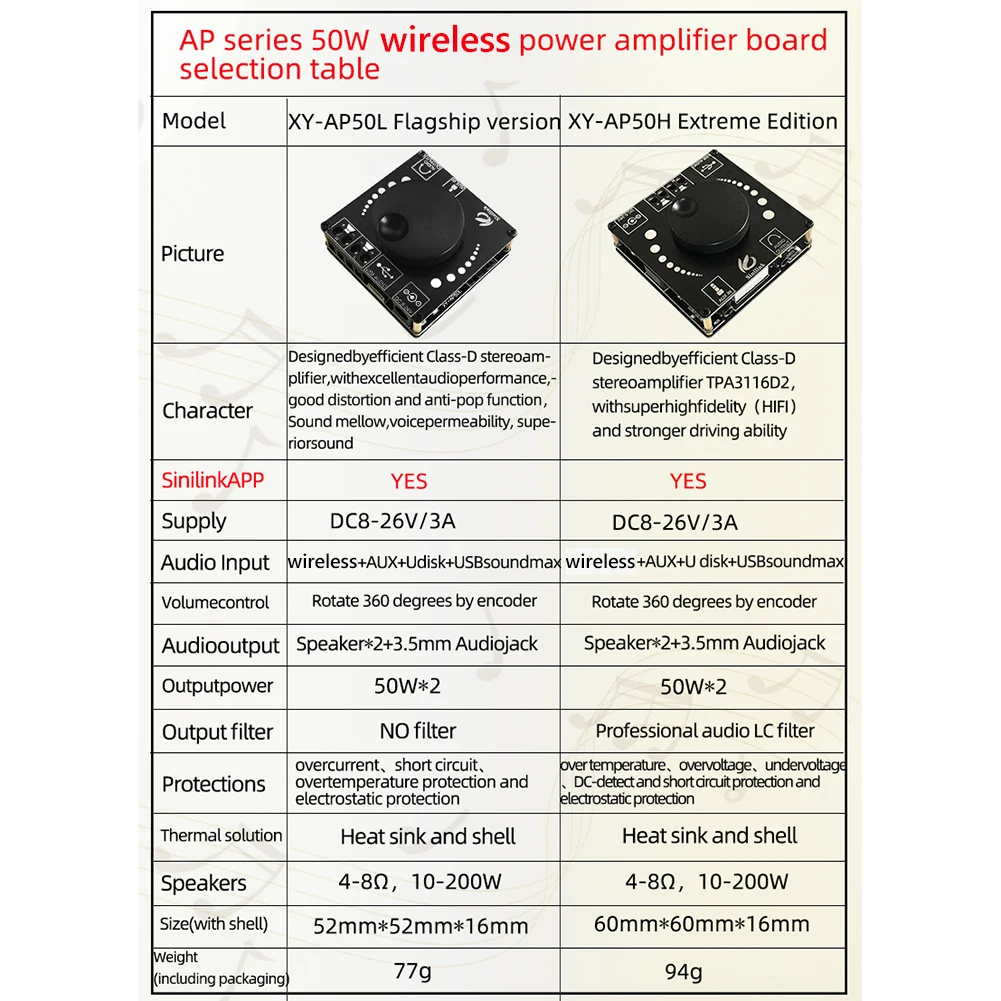 XY-AP50H 50Wx2 приложение управления HiFi аудио усилитель Bluetooth-совместимый 5,0 + AUX TPA3116D2 цифровой усилитель мощности двухканальный стерео беспроводной динамик модуль Набор