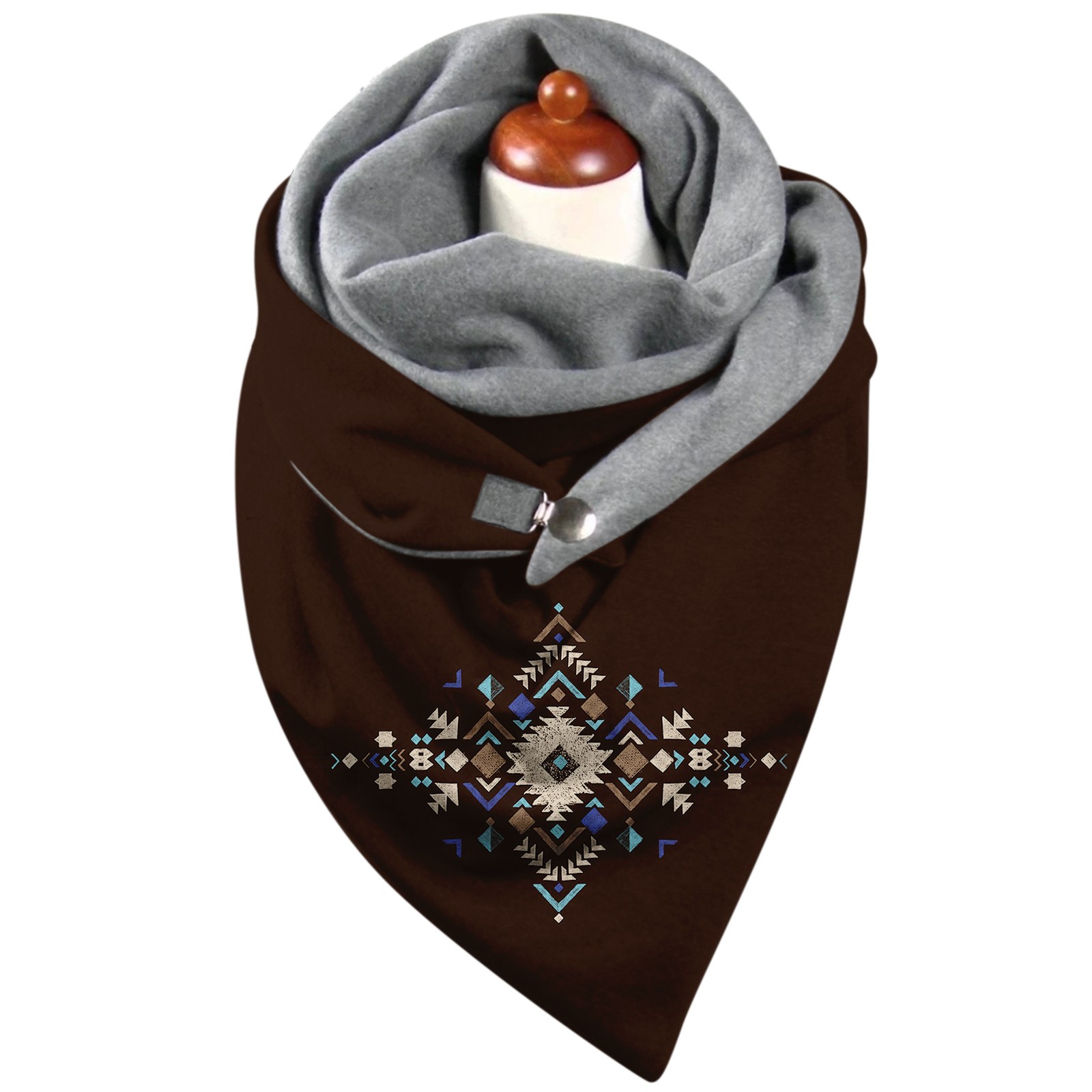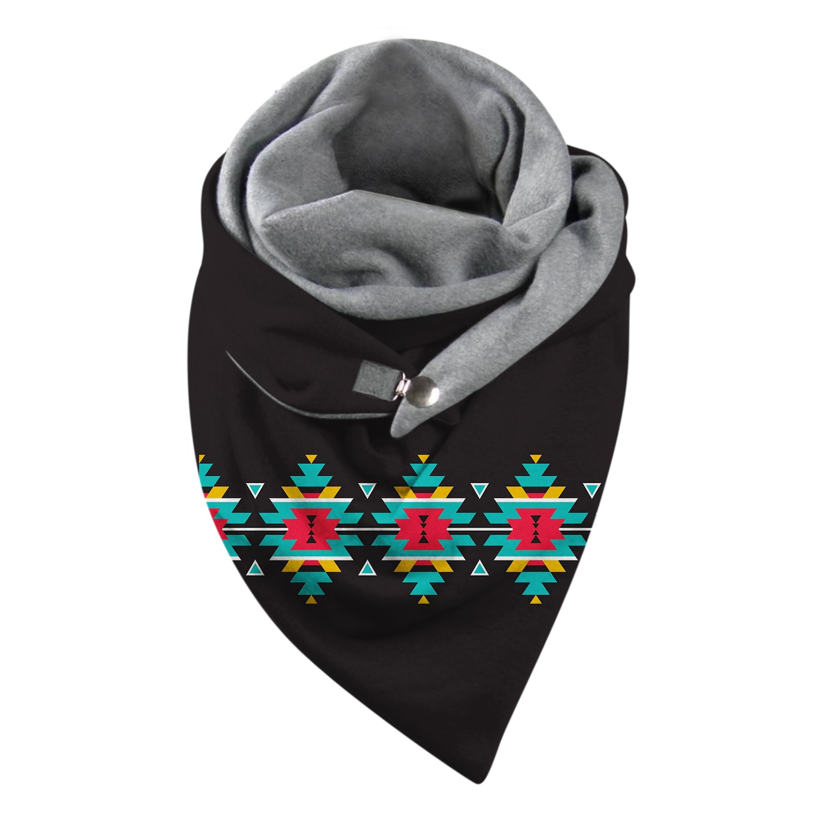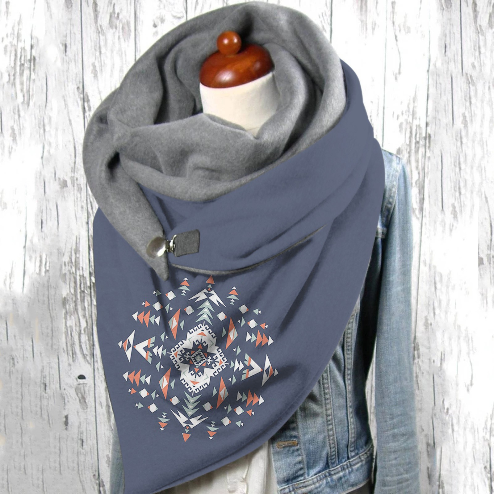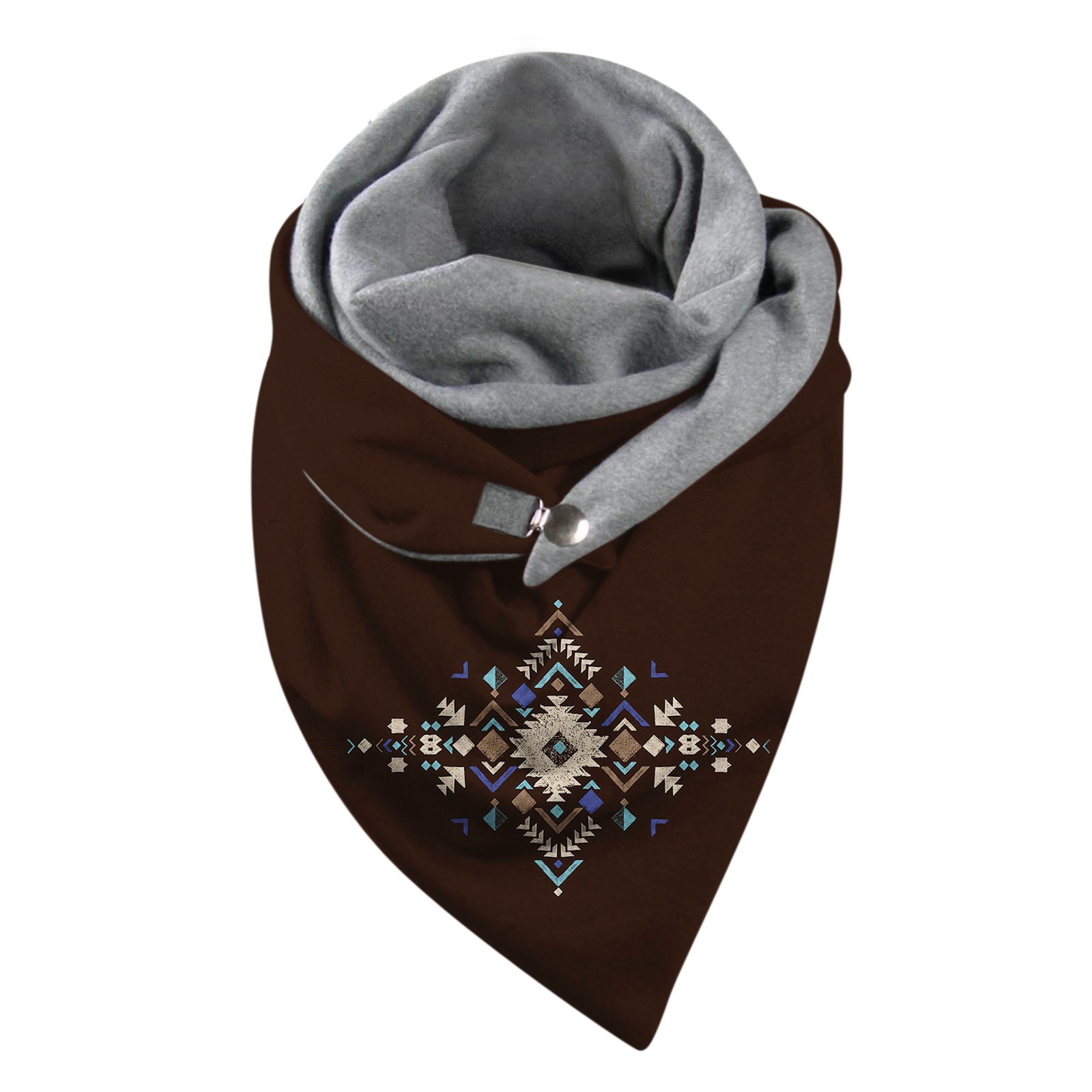 Универсальный теплый двухслойный шарф с геометрическим принтом и пряжкой на осень и зиму
