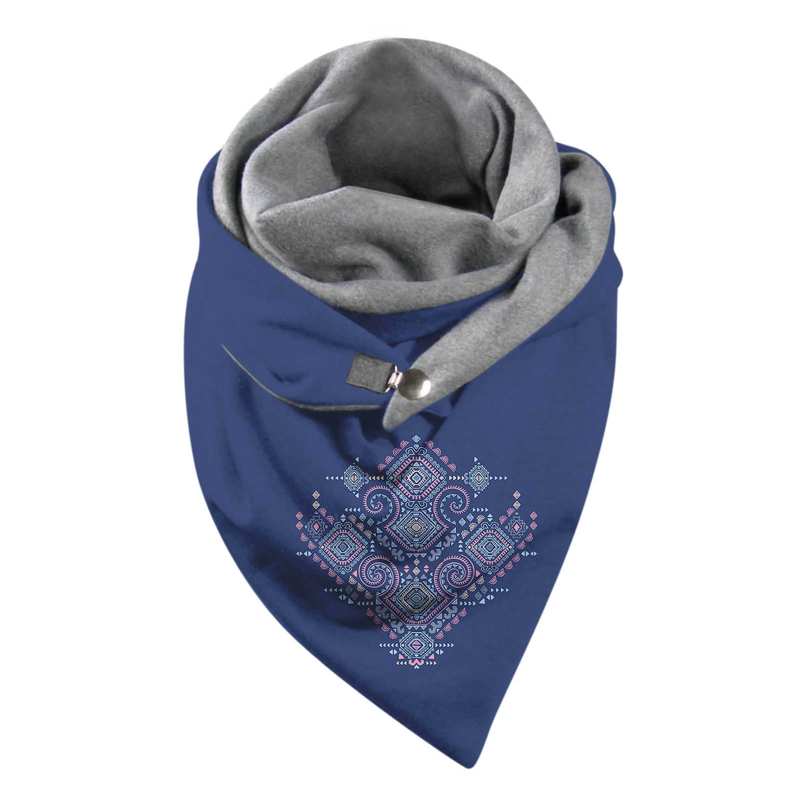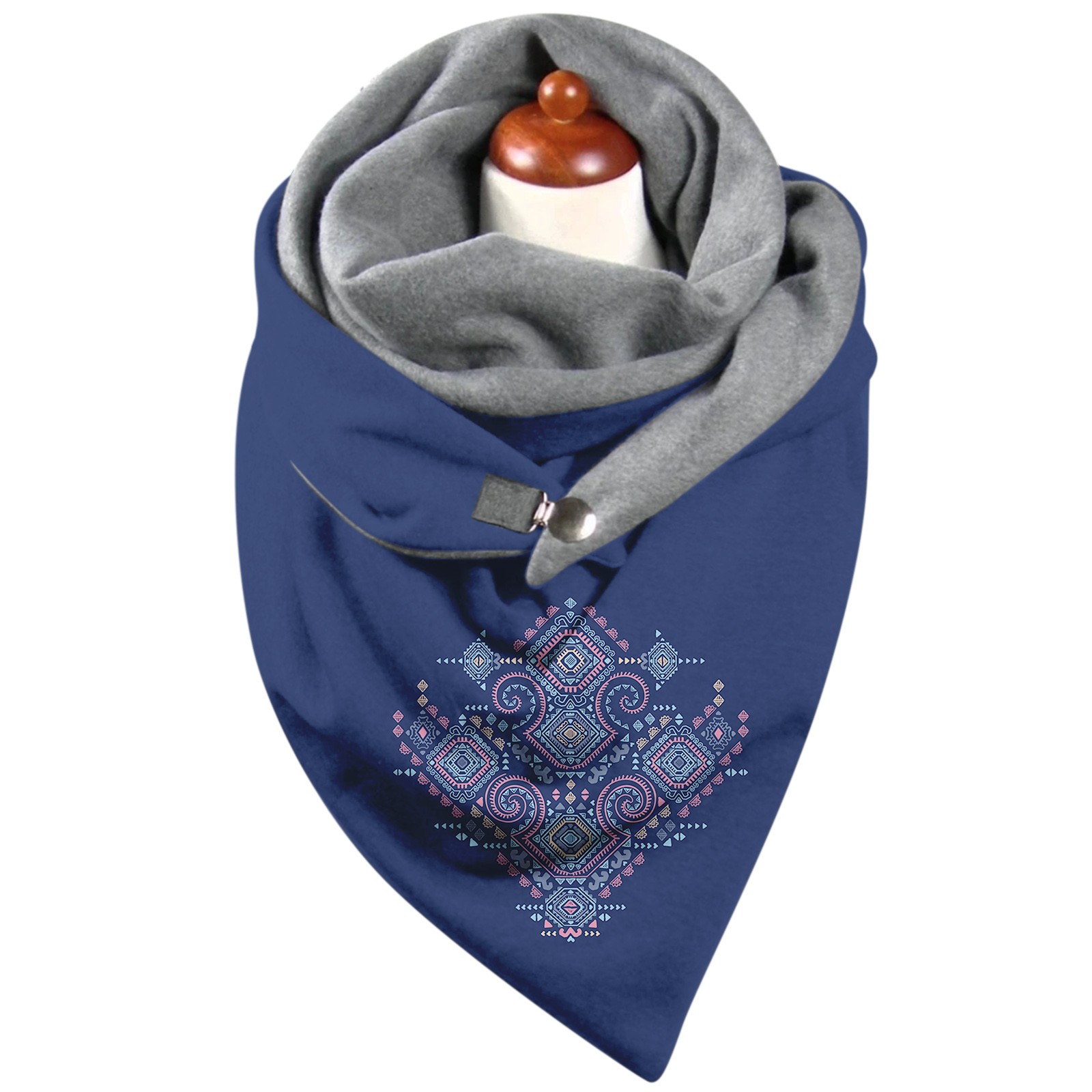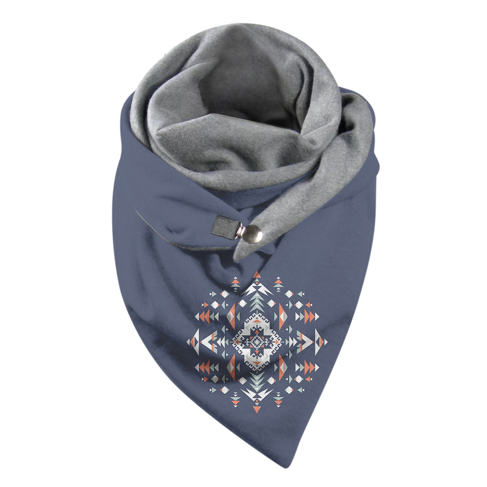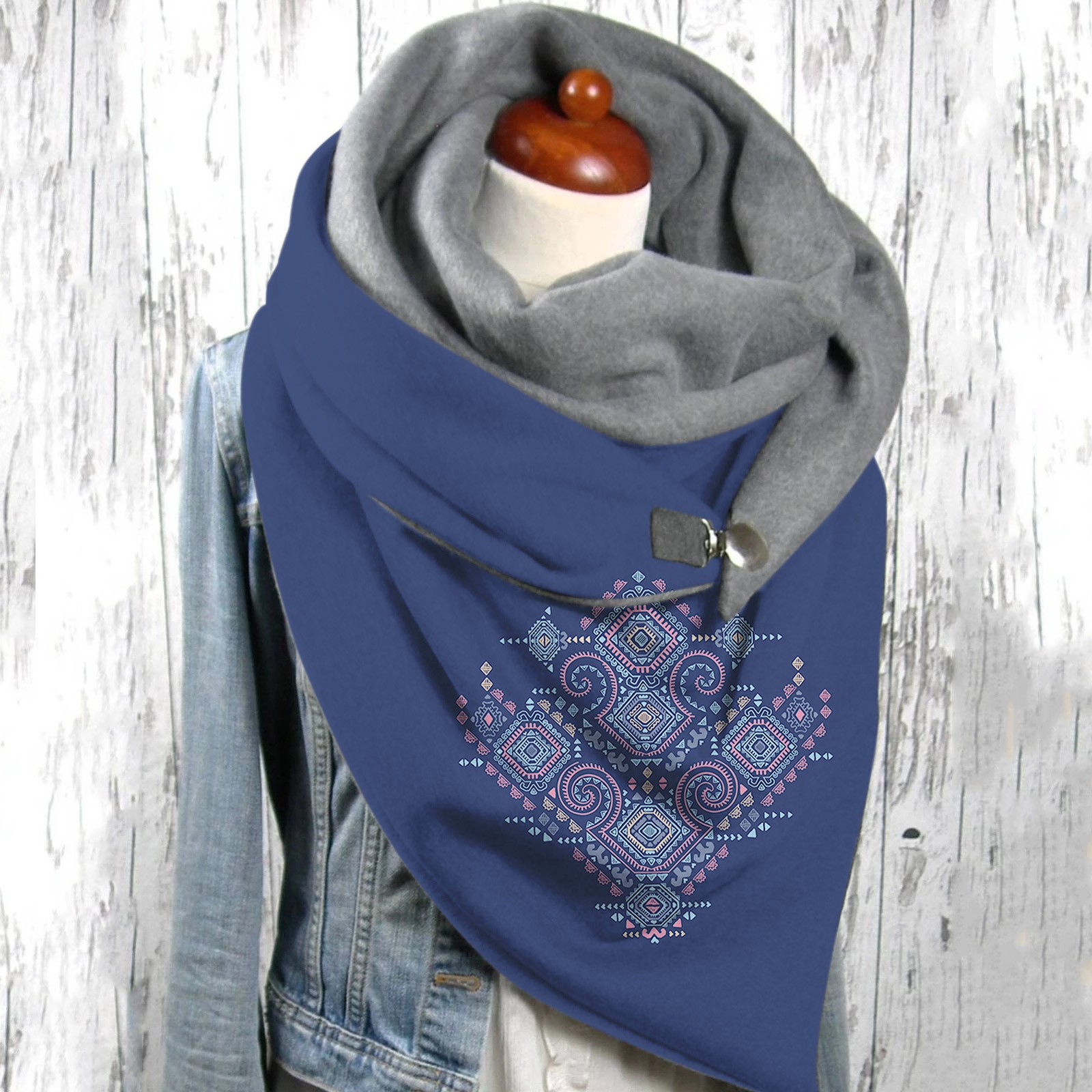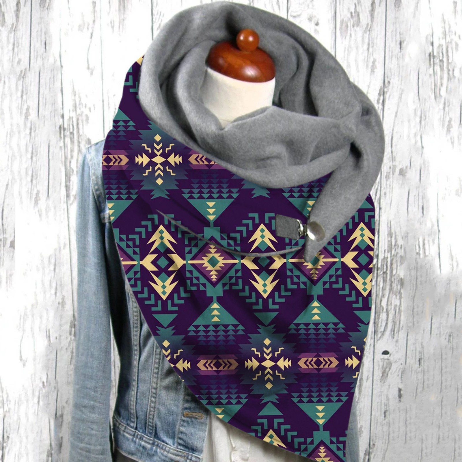 Универсальный теплый двухслойный шарф с геометрическим принтом и пряжкой на осень и зиму