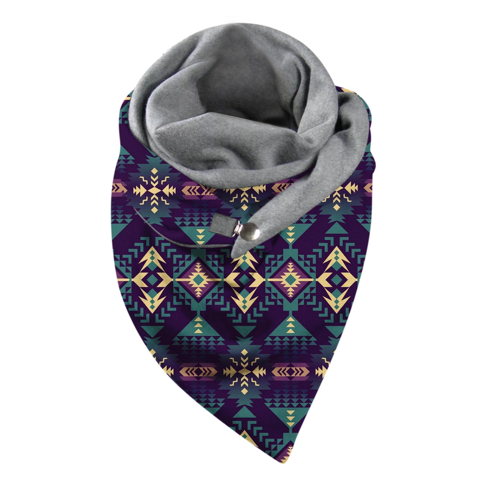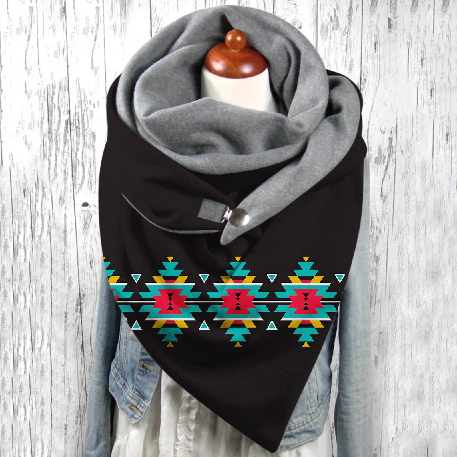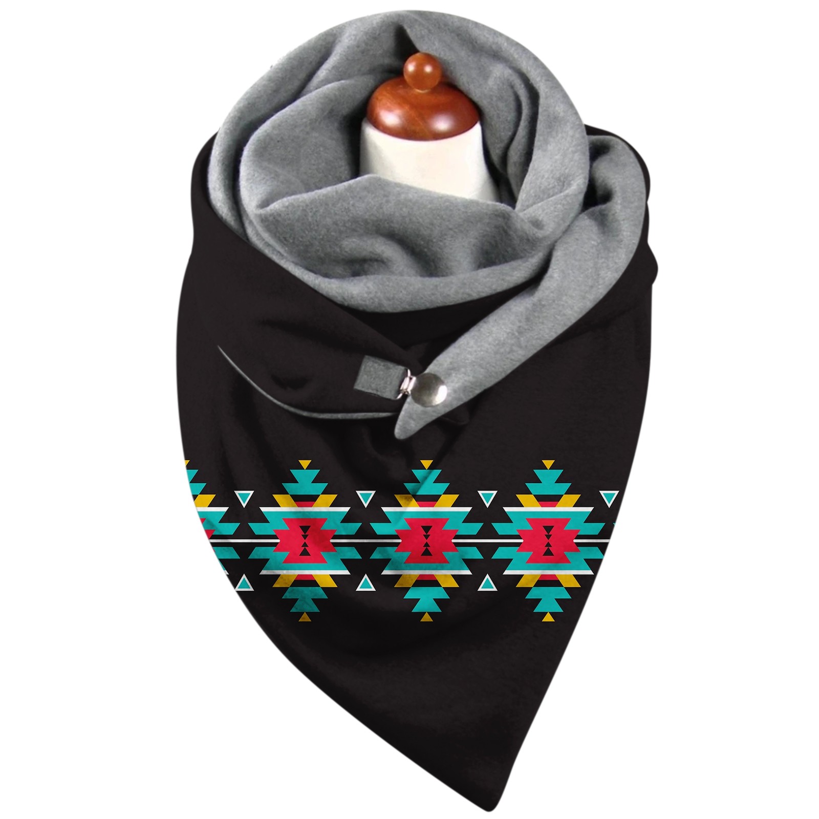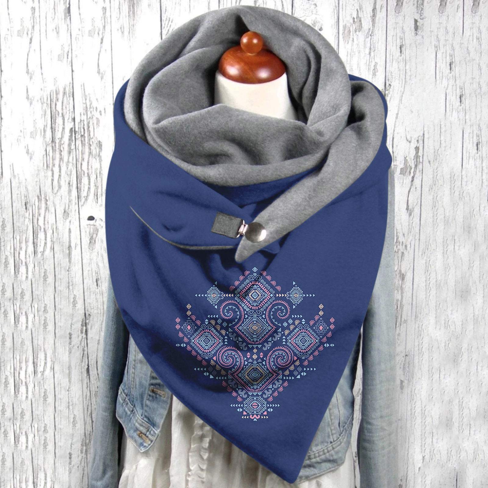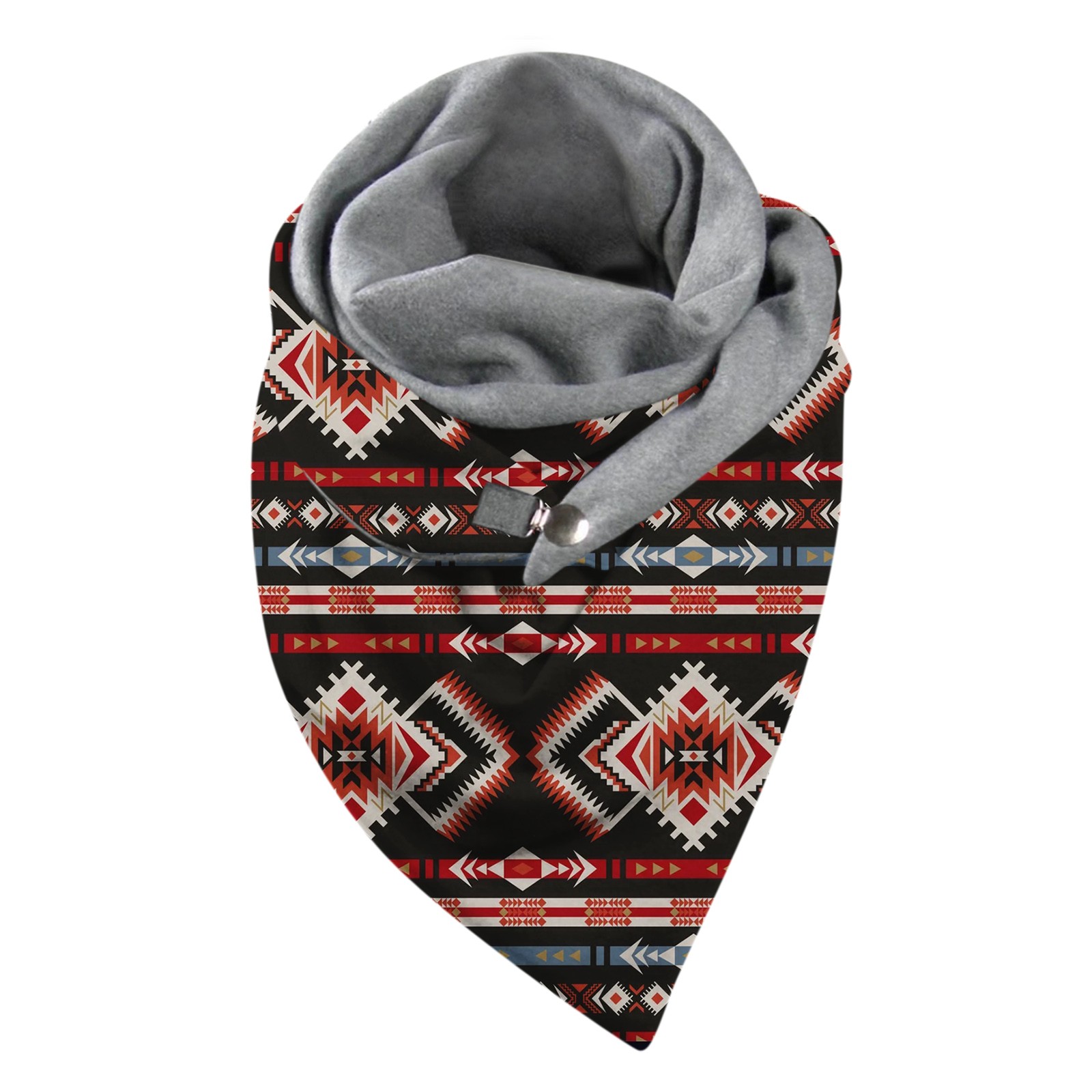 Универсальный теплый двухслойный шарф с геометрическим принтом и пряжкой на осень и зиму