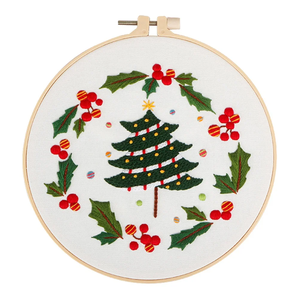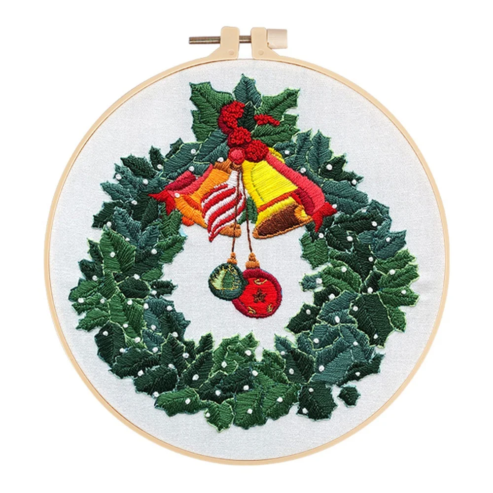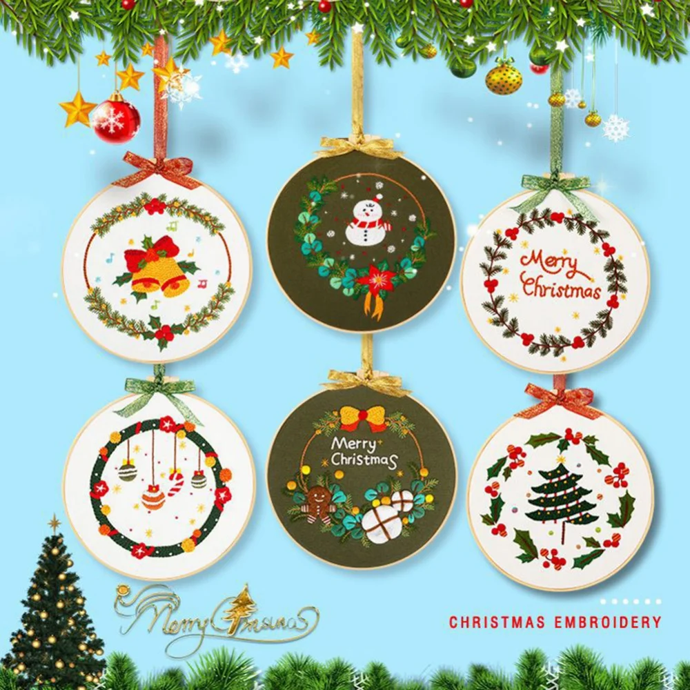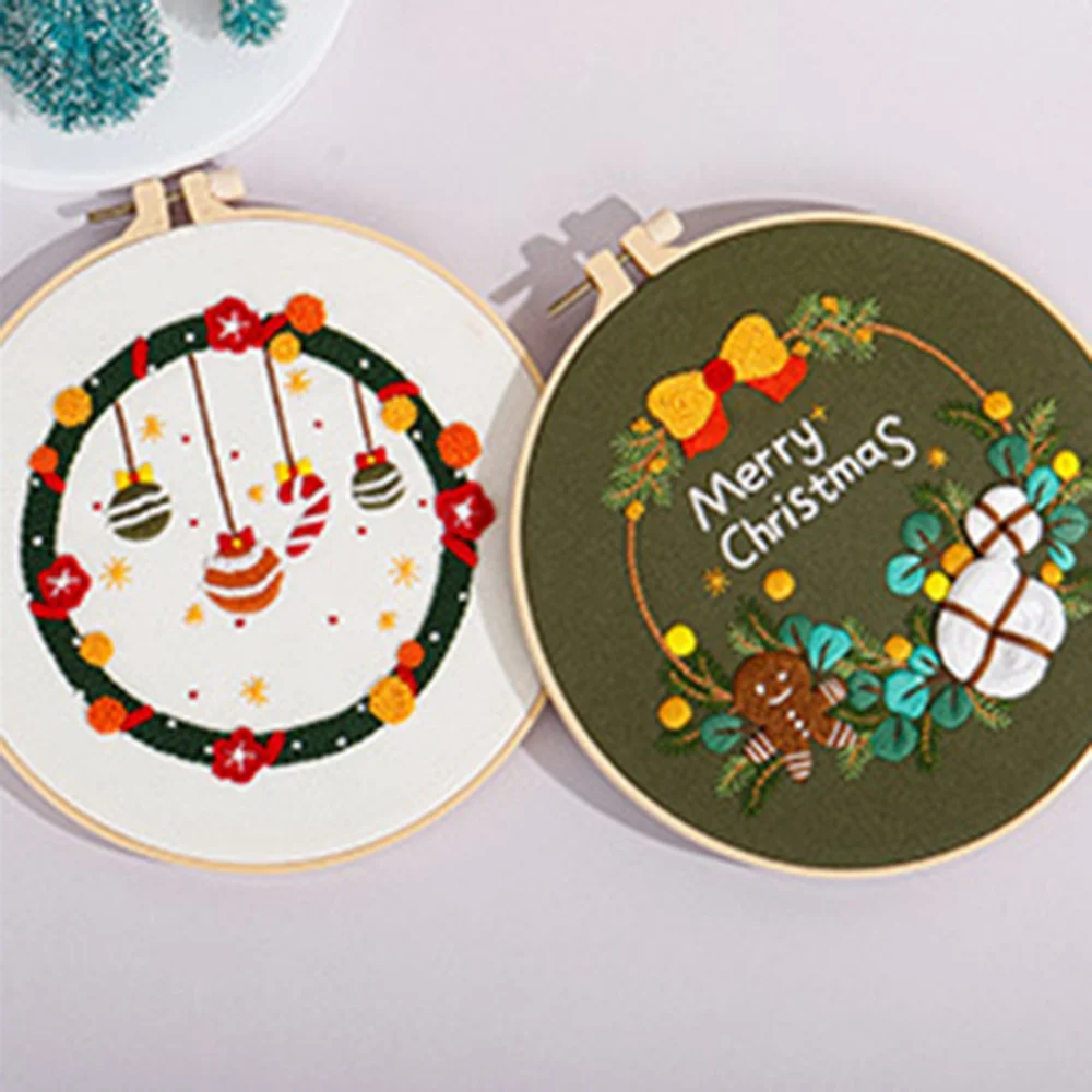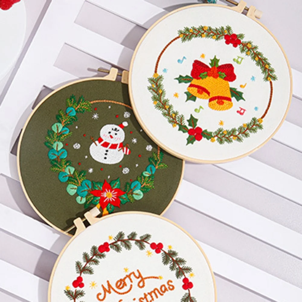Классические Рождественские узоры вышивки: каждый предмет вышивки напечатан красивыми рождественскими узорами, такими как «Счастливого Рождества», рождественские шляпы, колокольчики, леденцы, Рождественские елки, снеговики и т. д. Узор на ткани с вышивкой может быть закрыт после стирки.