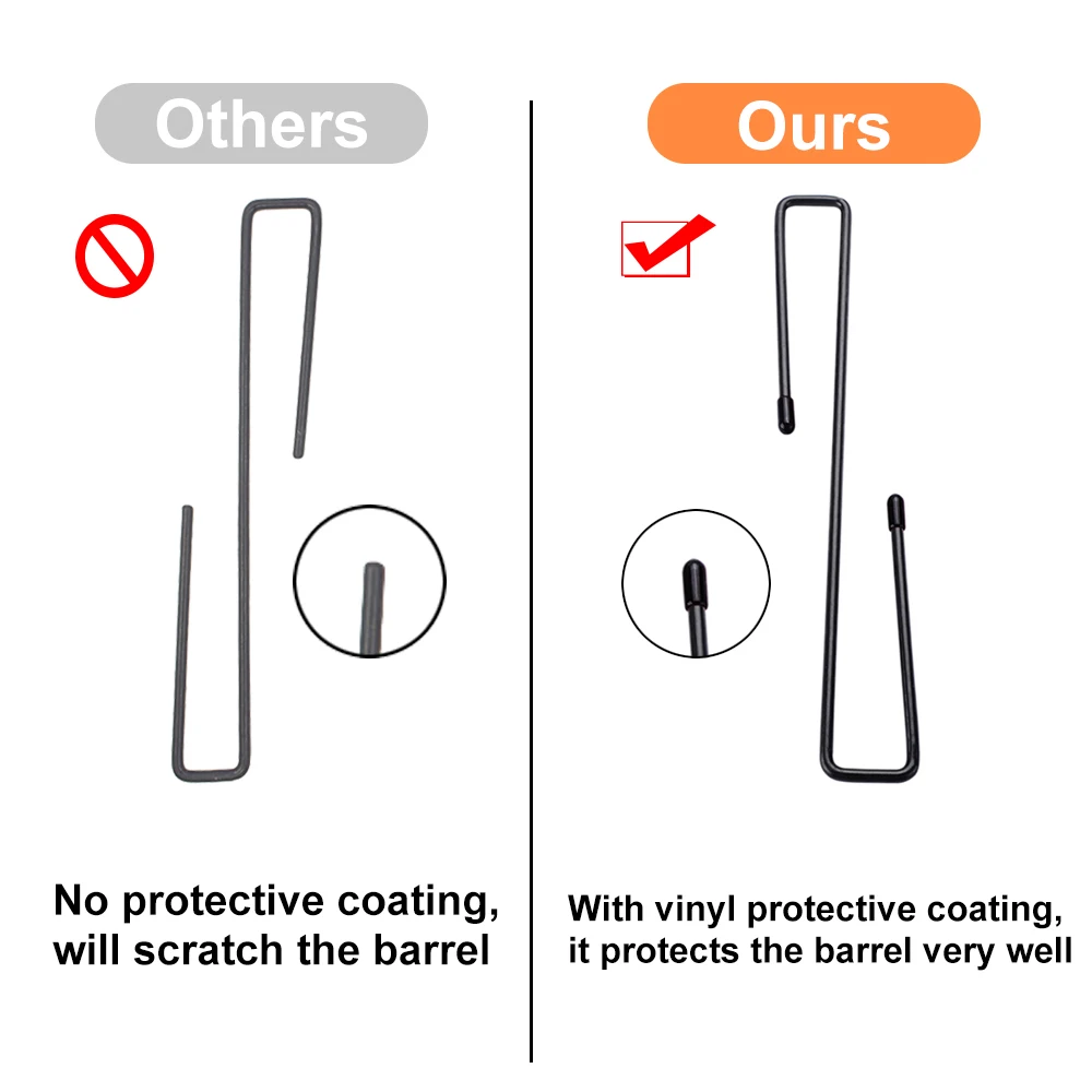 【Улучшенный пистолет rack】изготовлен из высококачественной стали с виниловым покрытием. Которые достаточно сильны, чтобы держать полностью заряженные пистолеты, а не провисать. Виниловое покрытие не царапает оружейные бочки или ржавчину. (даже после удаления резинового наконечника пистолет не поцарапается)