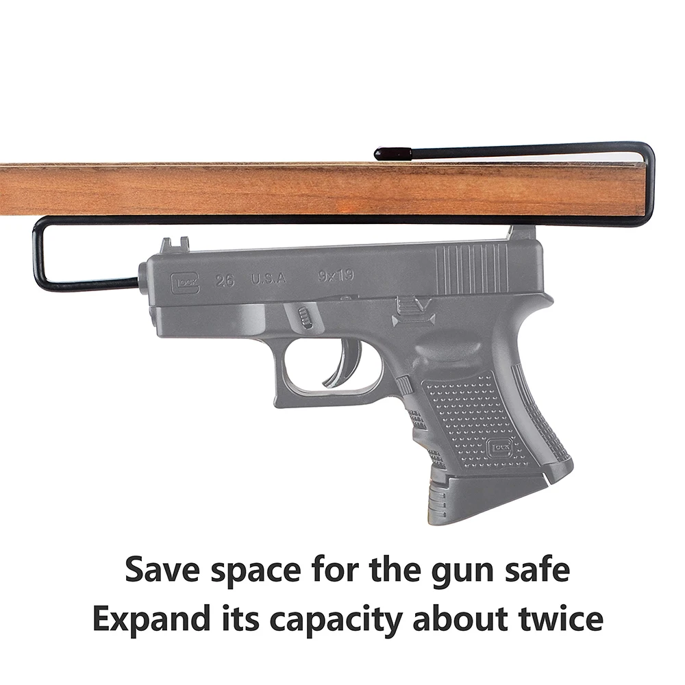 【Легко установить 】 нажмите на вешалку для пистолета на полку и подключите ствол пистолета к вешалке. Легко хранить пистолеты в сейфе для оружия, полке шкафа и в автомобиле.