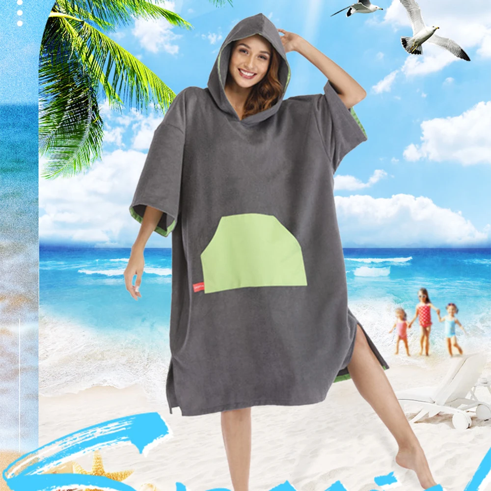 Серфинг, дайвинг, плавание, халат для переодевания, пляжный плащ с капюшоном, банный халат, утепленное с капюшоном, теплое и быстросохнущее банное полотенце