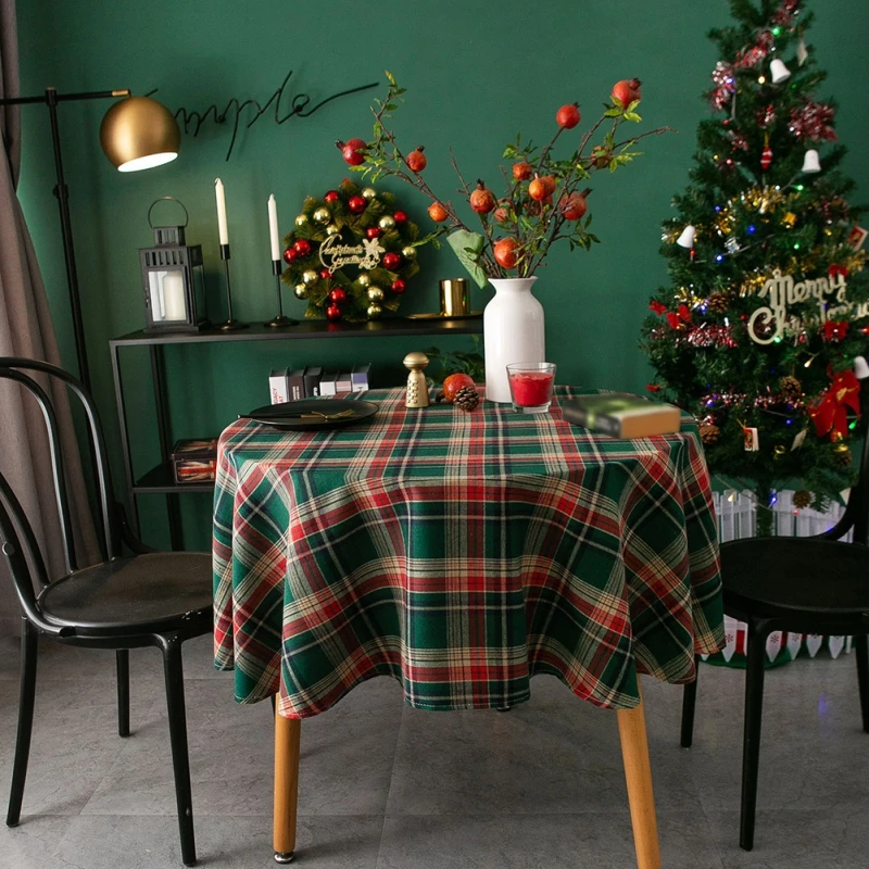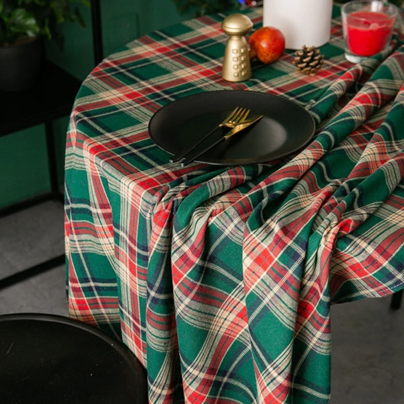 Изделие представляет собой рождественскую скатерть в стиле ретро, американская клетчатая скатерть, изготовленная из высококачественного хлопка и льняной ткани, прочная и долговечная.