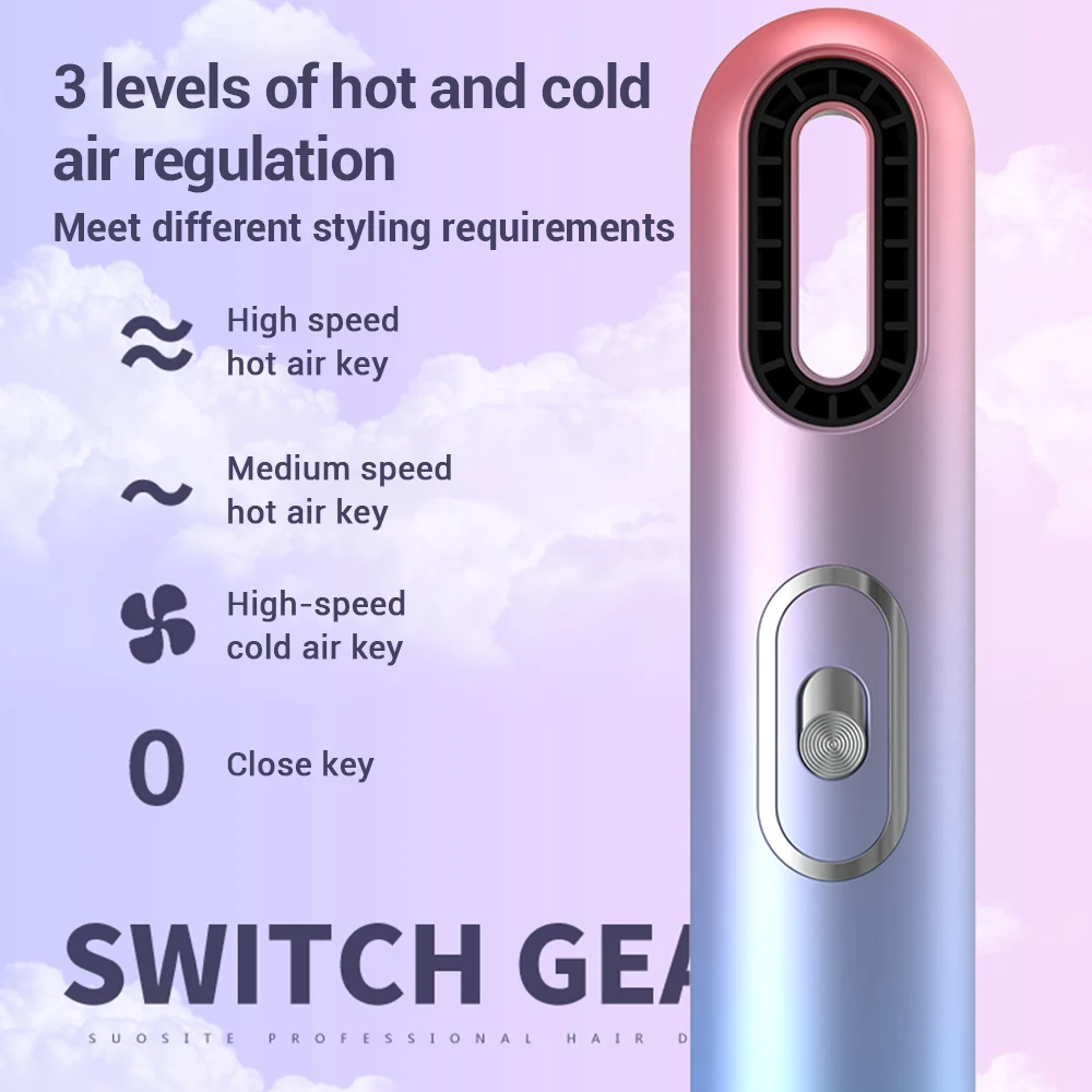 2,3 уровней холодного и горячего воздуха, сушки волос в течение 5 минут (в течение длительного периода времени), чтобы удовлетворить потребности разных людей и различных средах.