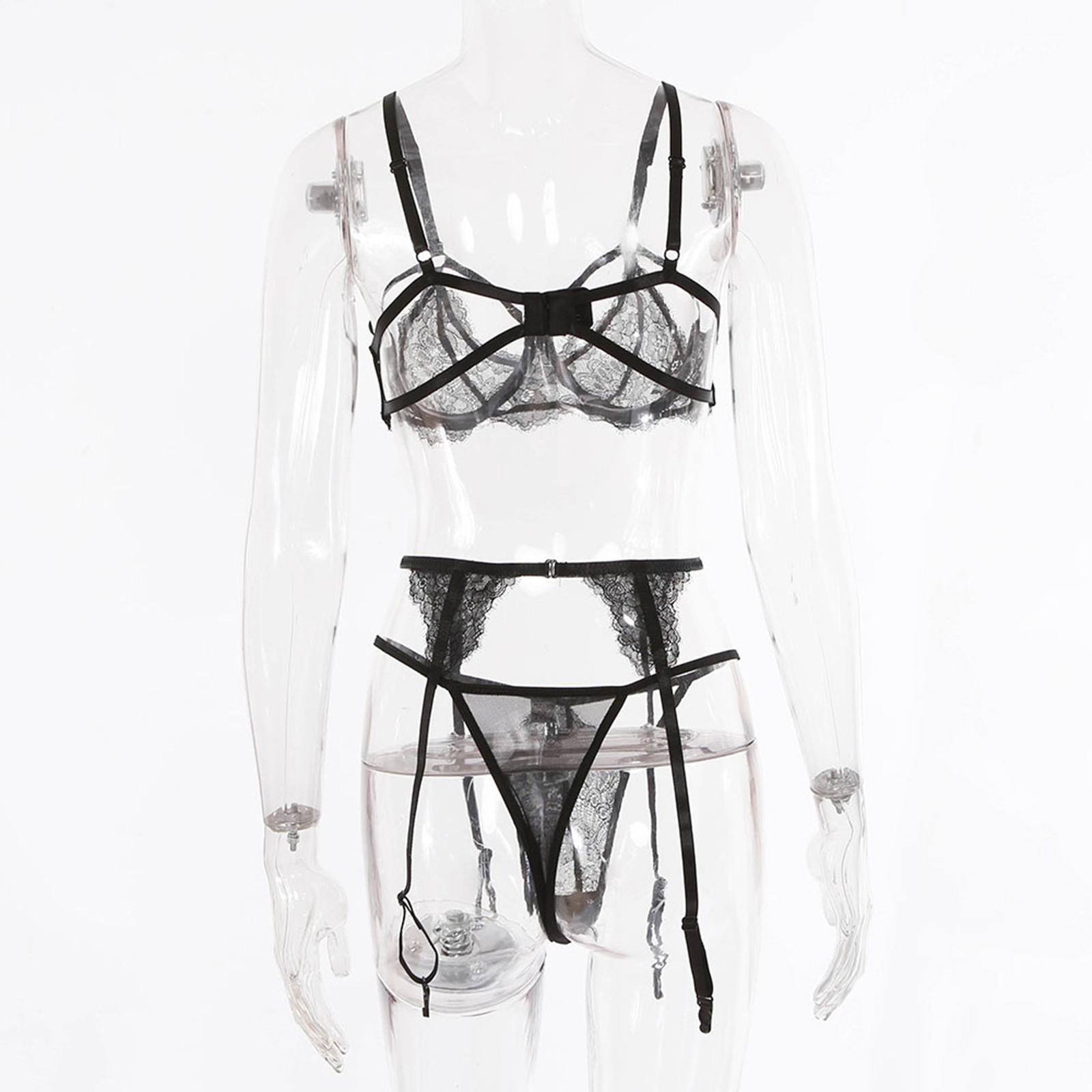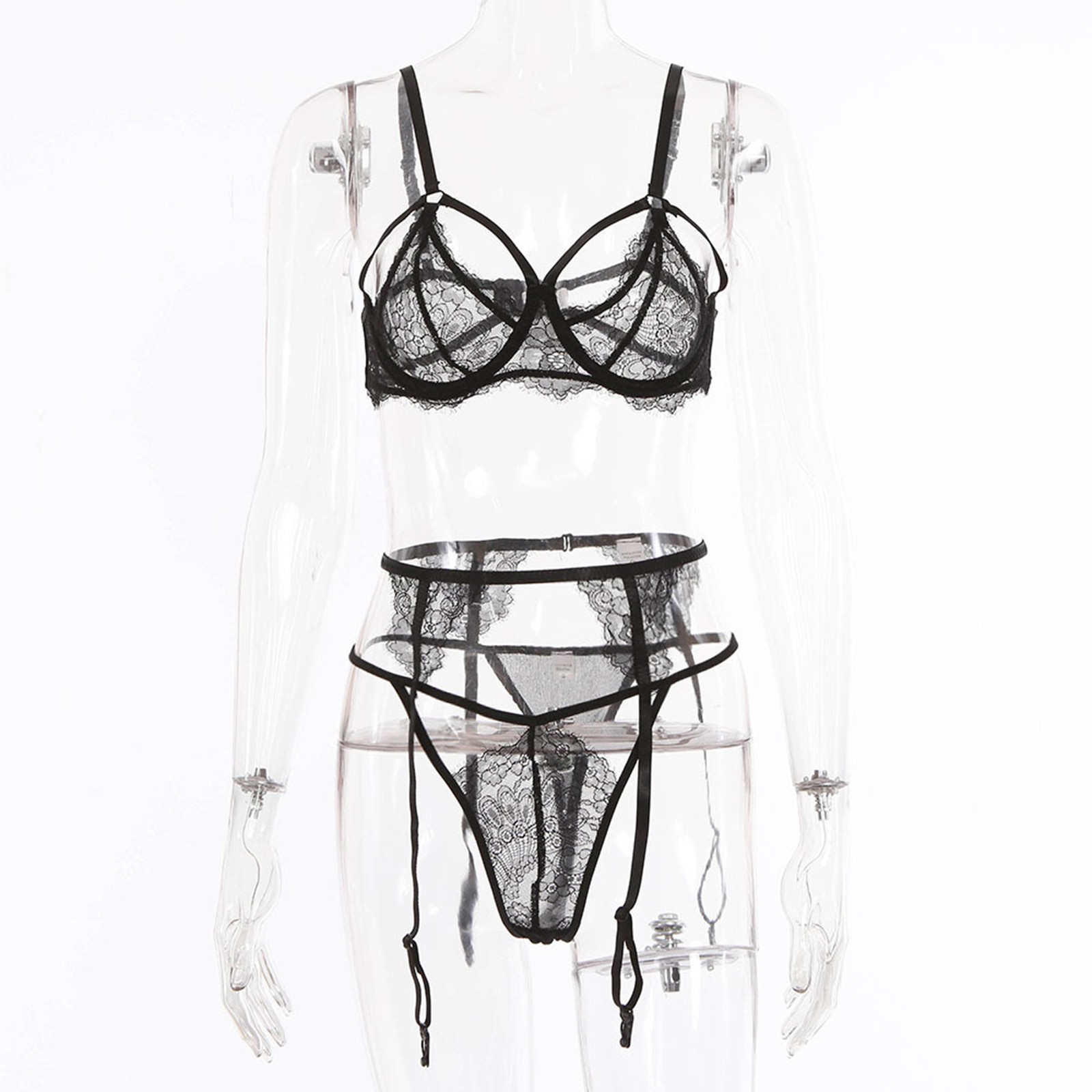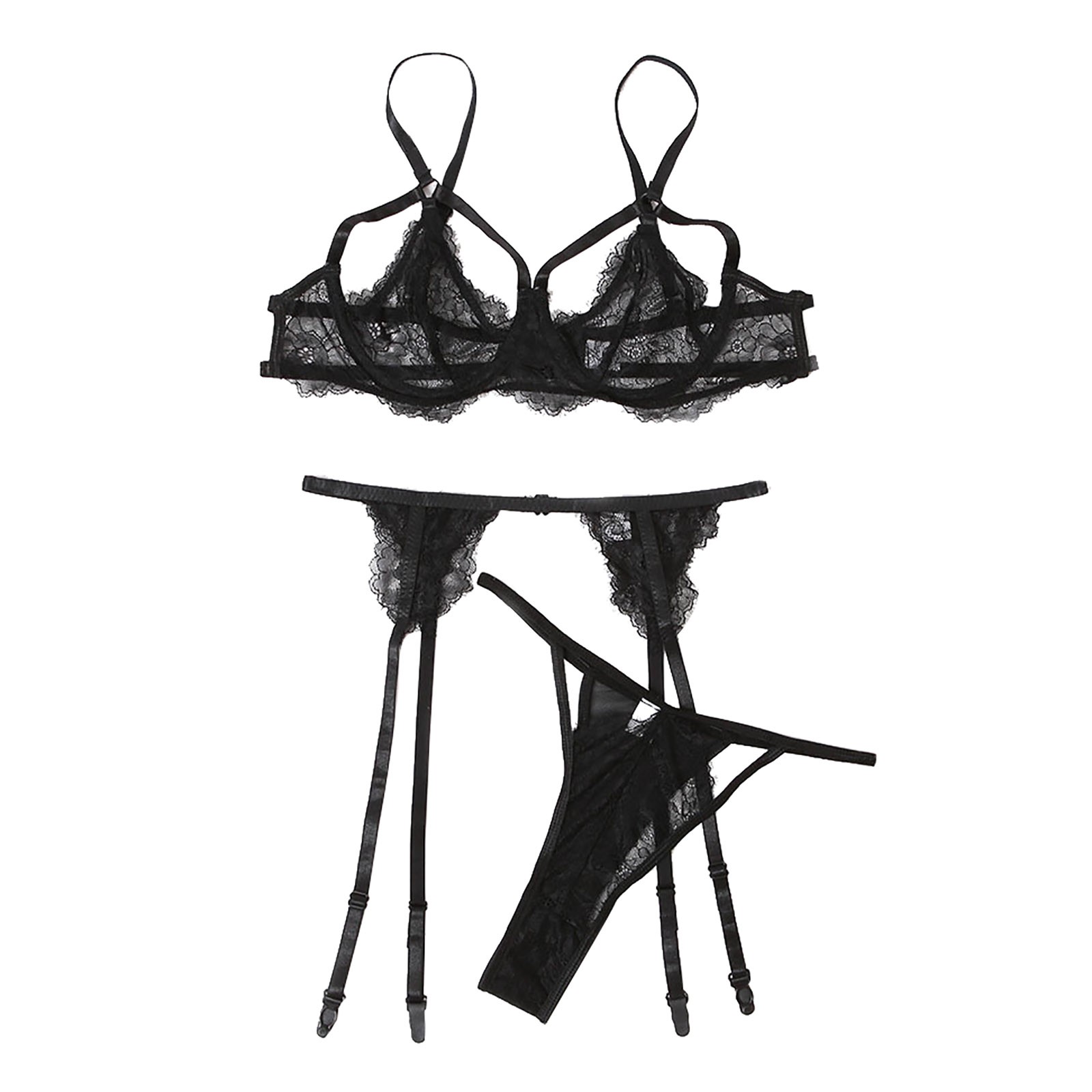 Женское сексуальное нижнее белье, кружевные стринги, нижнее белье, ночное белье, бюстгальтер со стальным кольцом, стринги, 3 шт., костюм