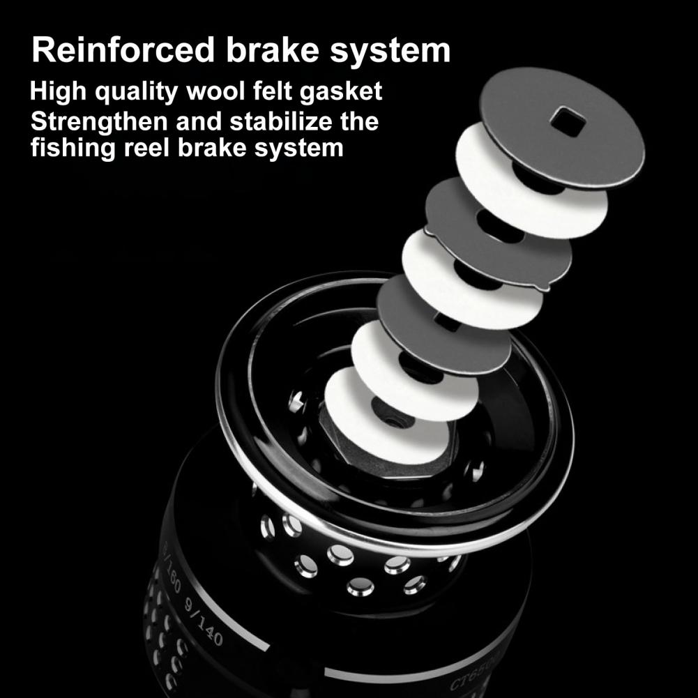 Конструкция ручки большого калибра обеспечивает сильную тормозную силу и простоту в эксплуатации. Мульти конструкция подшипника обеспечивает высокую скорость вращения и высокую производительность при броске, обеспечивая плавный выход из провода.