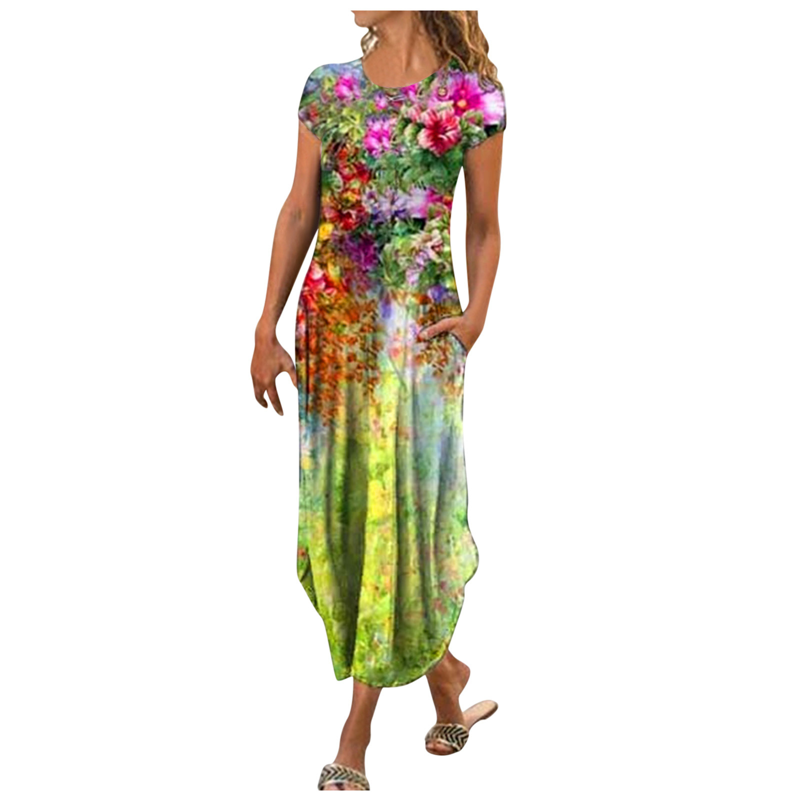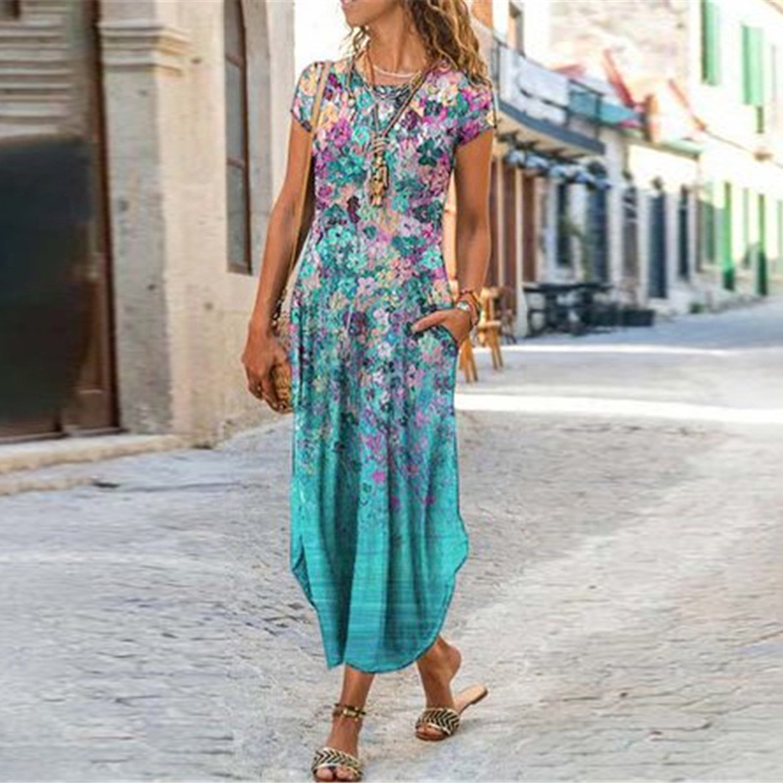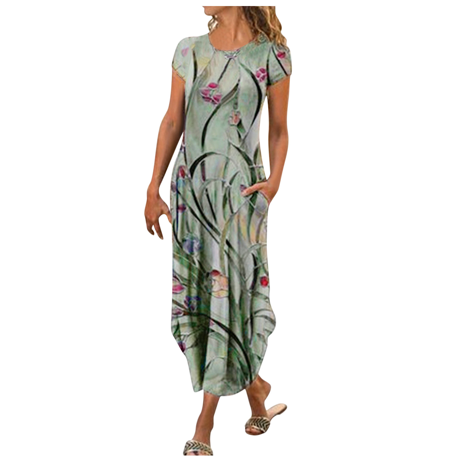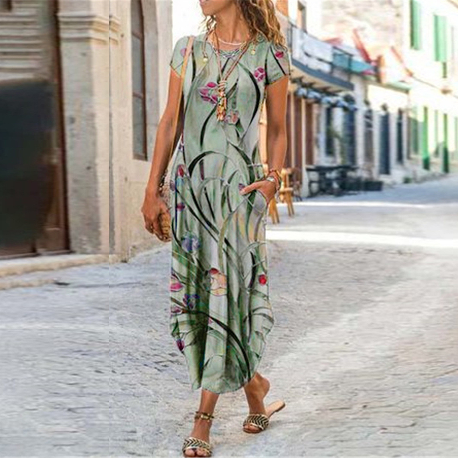 【Матч 】Это Платье с цветочным принтом можно носить с сандалиями, пляжными тапочками или на высоком каблуке Солнцезащитные очки.