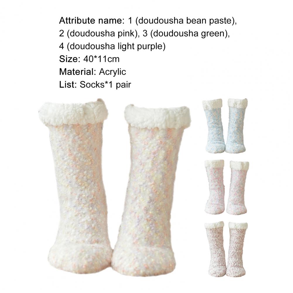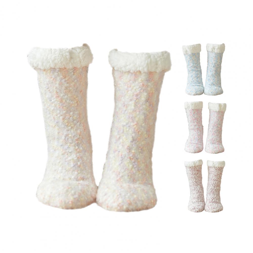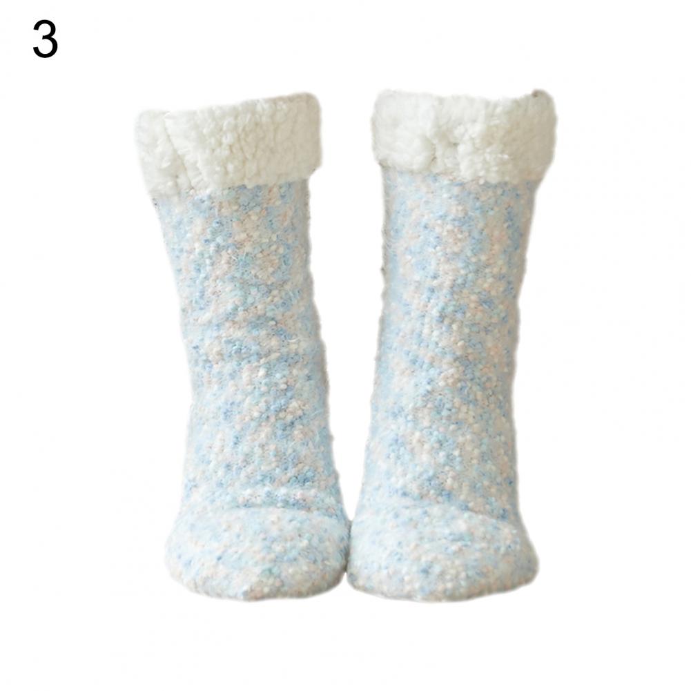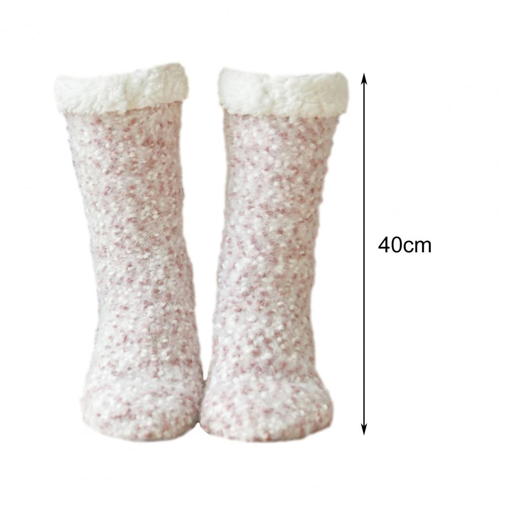 1 пара нескользящих силиконовых носков средней длины с флисовой подкладкой, однотонные женские теплые пушистые носки на Рождество