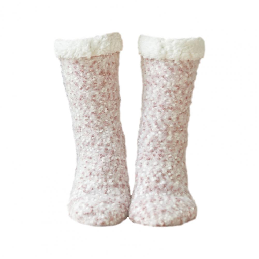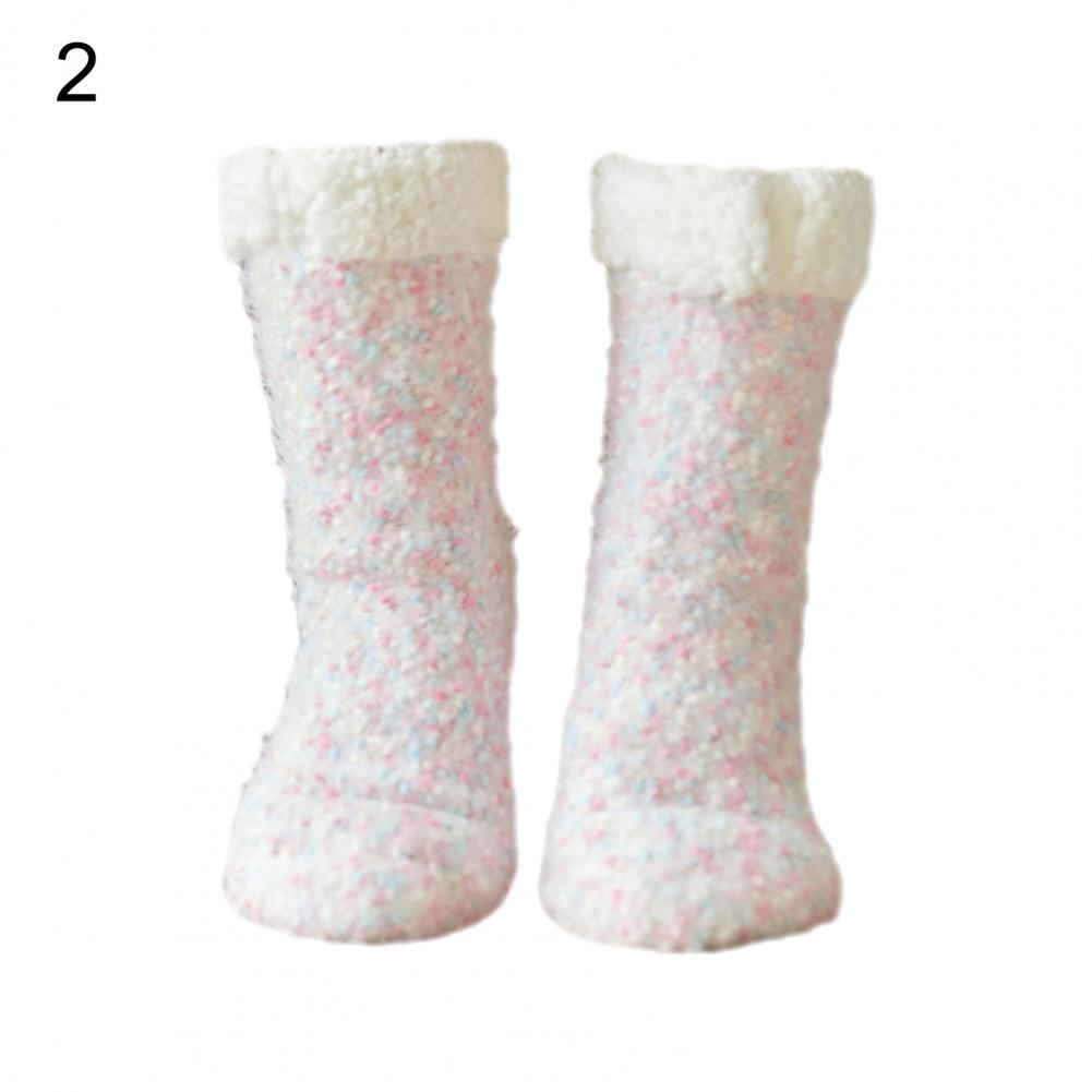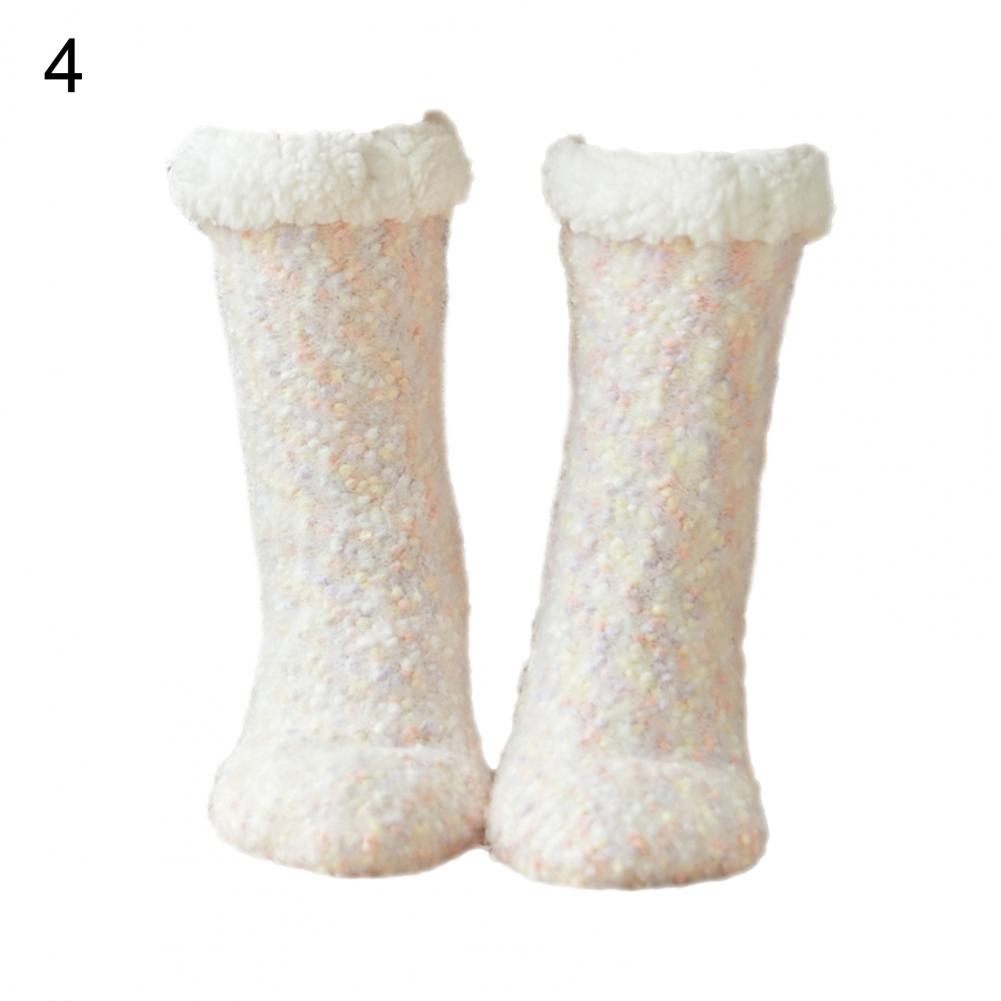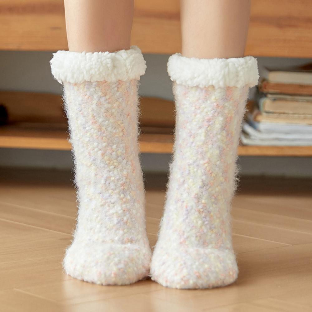 1 пара нескользящих силиконовых носков средней длины с флисовой подкладкой, однотонные женские теплые пушистые носки на Рождество