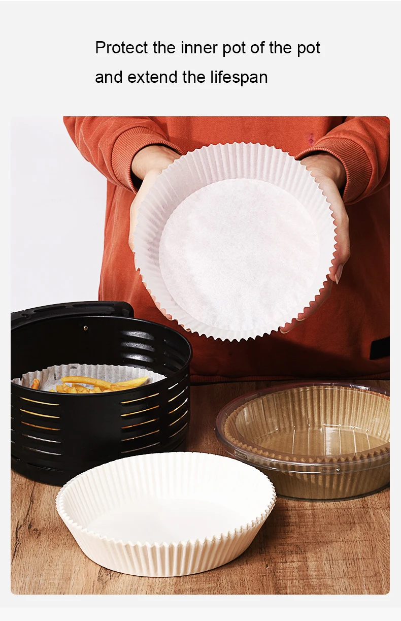 Подходит для воздушной фритюрницы, микроволновой печи, духовки, пароварки, плиты и т. Д. Бумажные вкладыши могут быть применены для выпечки, обжарки, жарки или сервировки пищи, подходит для домашней выпечки, кемпинга, барбекю, летние вечерние, легкие и практичные