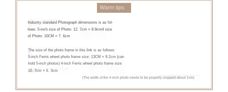 Примечание: Эта фоторамка не поддерживается в нашем магазине. Фотографии должны быть подготовлены самостоятельно. По умолчанию фоторамка бумажная в фоторамке заменяется и ее необходимо заменить самостоятельно. Пожалуйста, будьте осторожны, если вы возражаете.