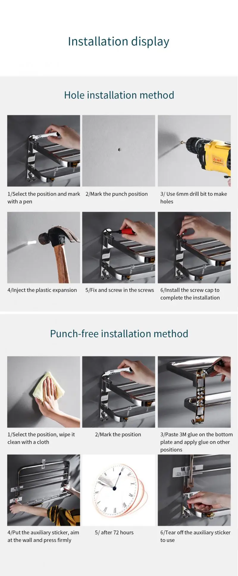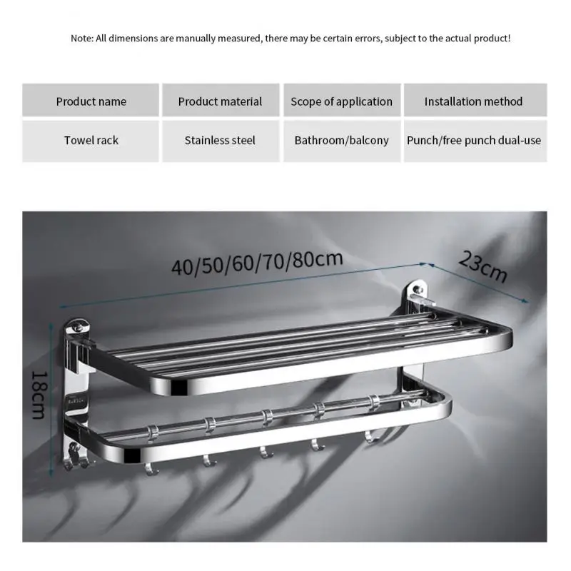 Изготовлен из прочной нержавеющей стали 304 и отделан полотенцем для защиты полки полотенец от коррозии, защищает от ржавчины.