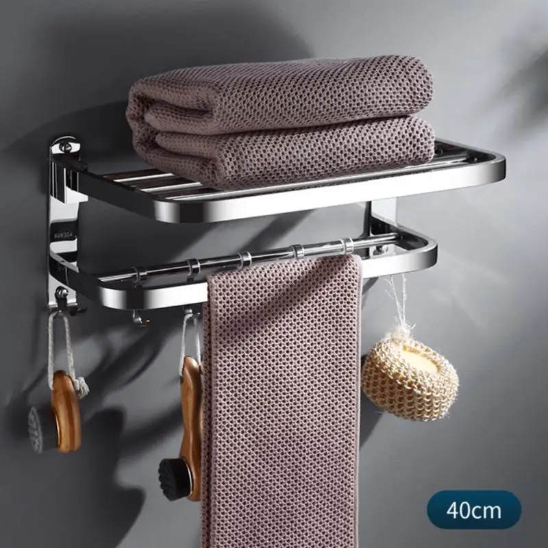 Полка для полотенец с откидной планкой и 6 крючками, удовлетворяет потребности в пространстве. Вы можете повесить полотенца и одежду.