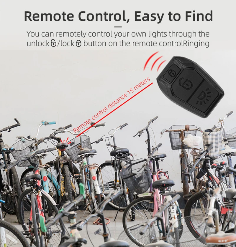 4. Вибрационная индукция 130 децибелов высокая подача сигнала тревоги: отпугивает воров, лучшая защита для велосипедов. Беспроводной пульт дистанционного управления, сильный и стабильный сигнал.