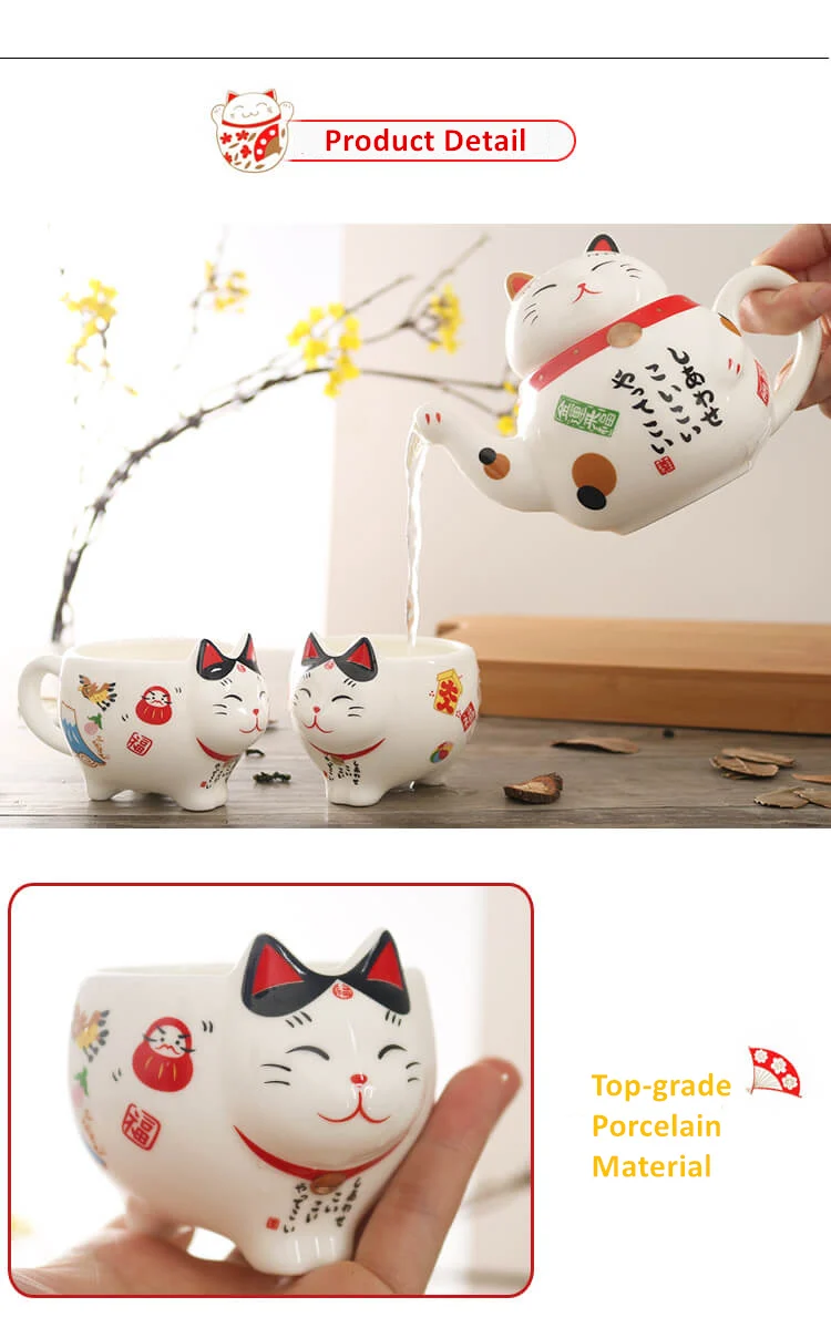 Креативный керамический чайный горшок Maneki Neko с ситечком, милый чайный горшок с котиком, милый японский фарфоровый чайный набор с изображением счастливого кота