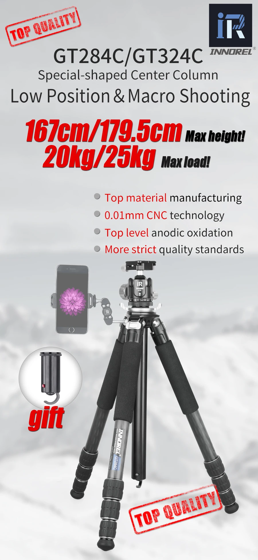 【Высокое качество и портативность изготовлен из подлинного 10 слоев углеродного волокна, трубки легче и прочнее. Конструкция этого штатива компактна. Длина в сложенном виде составляет всего 57,5 см/62 см, поэтому легко носить с собой и подходит для путешествий. Другие основные части изготовлены с ЧПУ и технологией анодного окисления, Что делает поверхность намного лучше и более гладкой, а цвет штатива более хорошо распределен и изысканен.