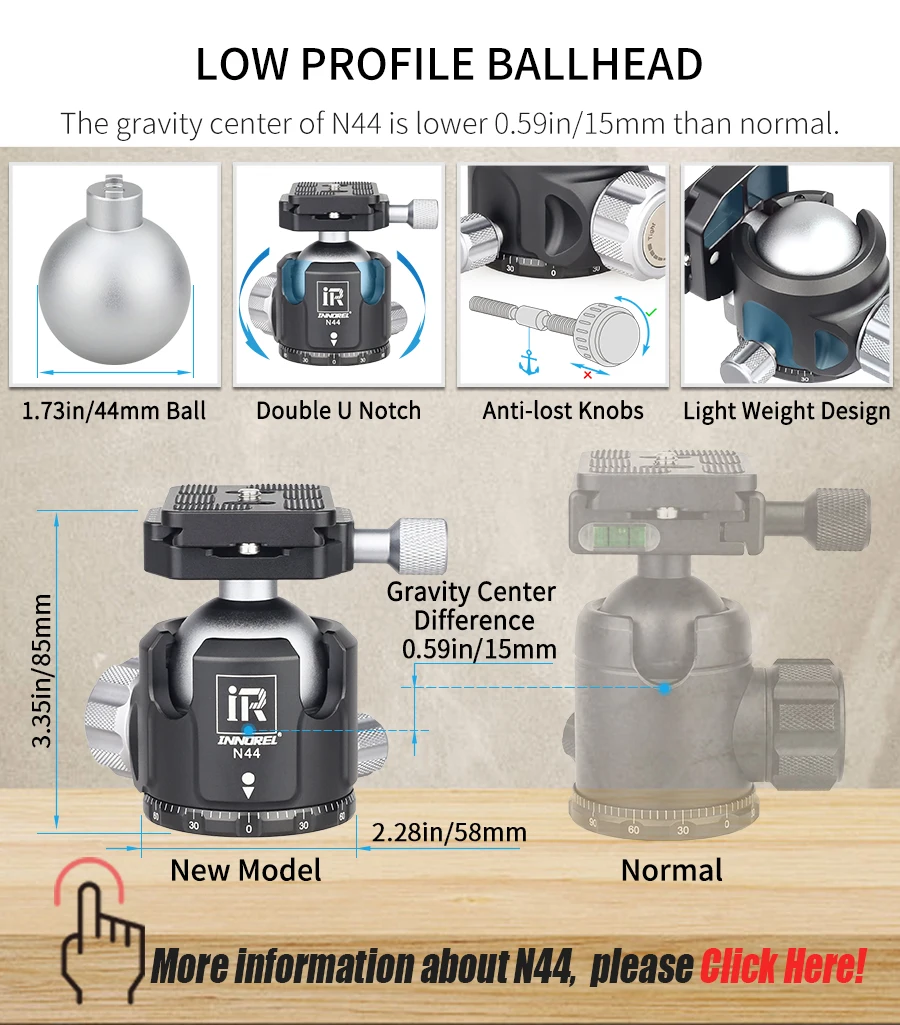 【Стабильная Низкопрофильная шариковая головка спроектирована с низким центром тяжести, ЧПУ и диаметром большого шара 36 мм/44 мм, что делает его чрезвычайно компактным и стабильным. Его слот безопасности защищает вашу камеру во все времена.