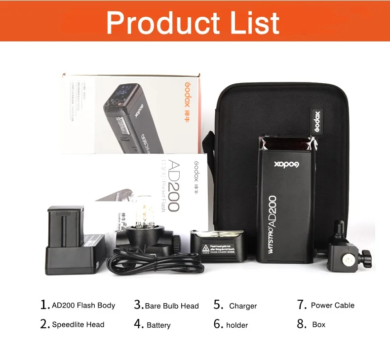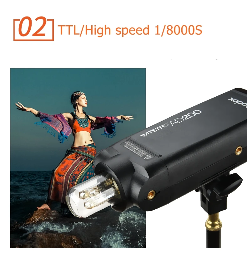 Godox AD200-это Профессиональный высокоскоростной фотографический светильник с беспроводным режимом работы и режимом радиопередачи, совместимый с камерами Nikon Canon и Sony.