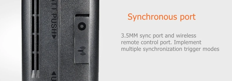 Режим синхронизации: 3,5 мм Линия синхронизации, Беспроводной управления Порты и разъёмы.