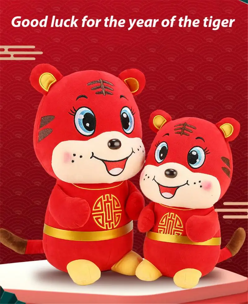 Плюшевая кукла полна праздничных элементов китайского Нового года, и ее милое выражение заставляет людей любить его.