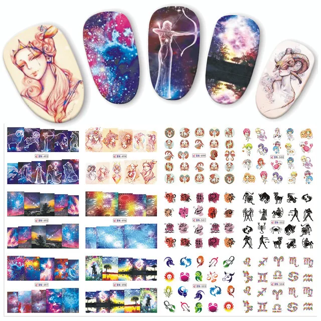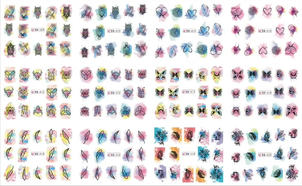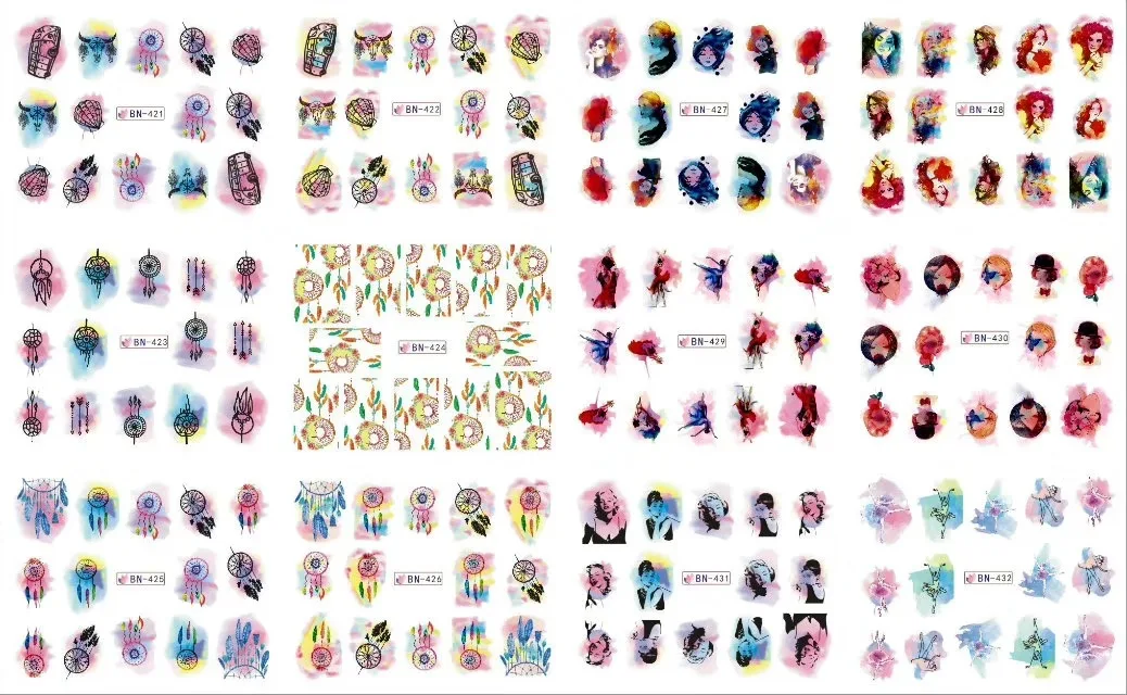 Упаковка: 12 видов конструкций/набор переводных наклеек для ногтей