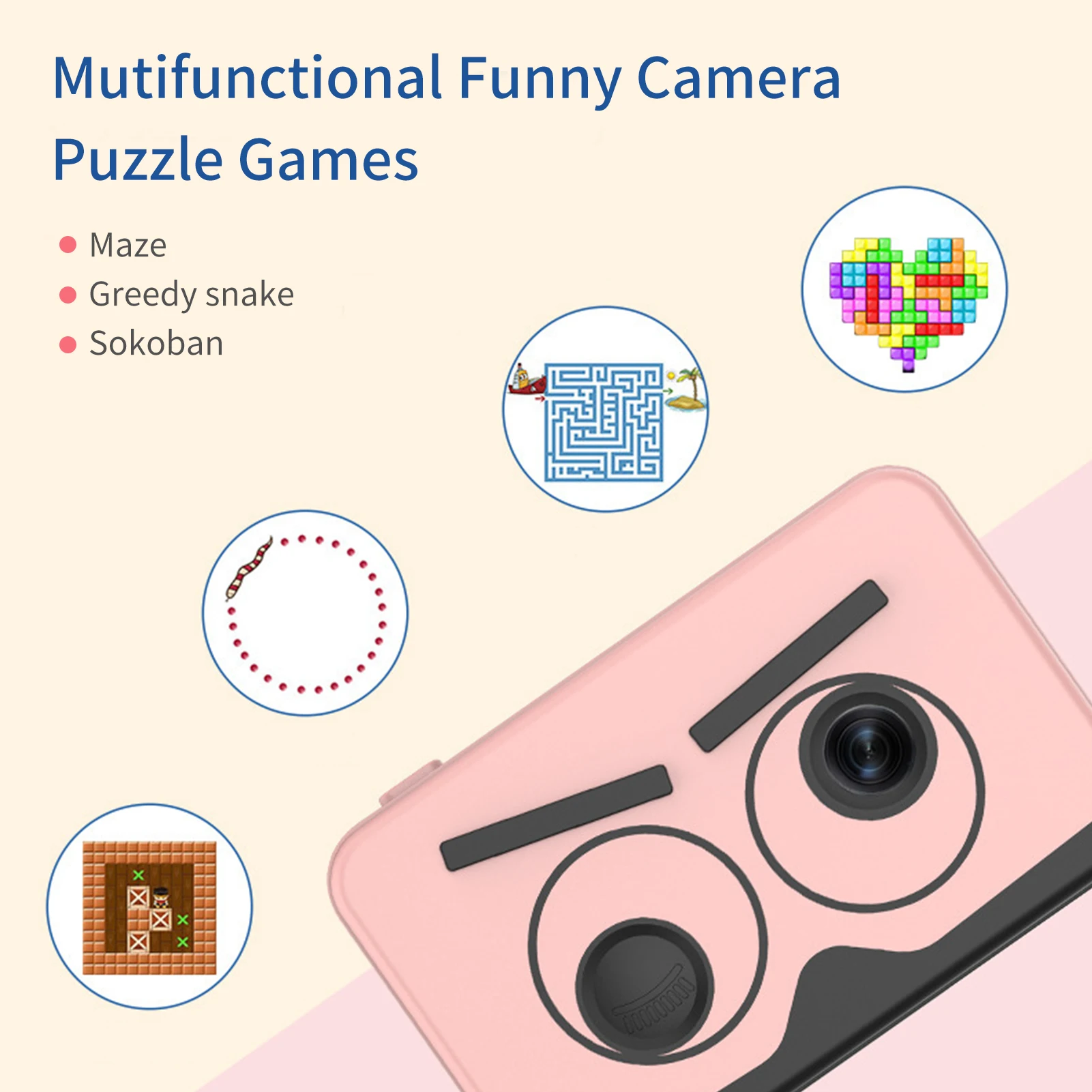 Многофункциональное устройство для съемки-оно будет автоматически, когда камера на чем-то, и встроено в различные фильтры и наклейки, чтобы выбрать, чтобы добавить больше удовольствия к фотографиям. Поставляется с видеозаписью, воспроизведением, играми-пазлами, дает детям уникальный вид детства.