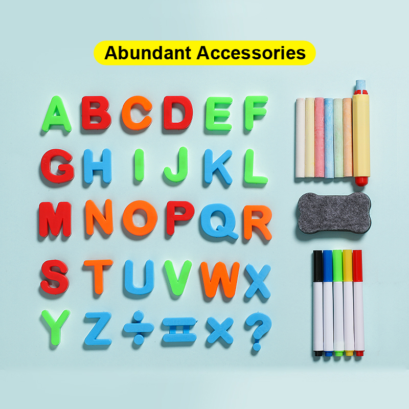 5. Множество аксессуаров, магнитных буквенных цифр, слегка прикрепляющих панель, раннее образование ребенка на один шаг быстрее. Также имеется практичный держатель мела. Когда Мел слишком короткий, вы можете использовать держатель мела для увеличения длины мела.