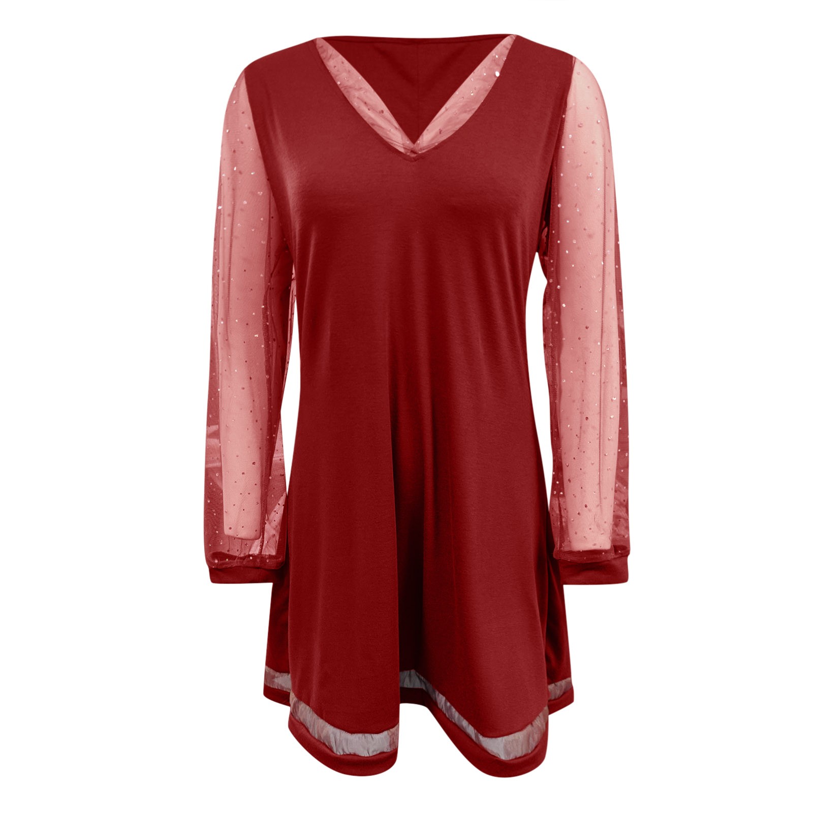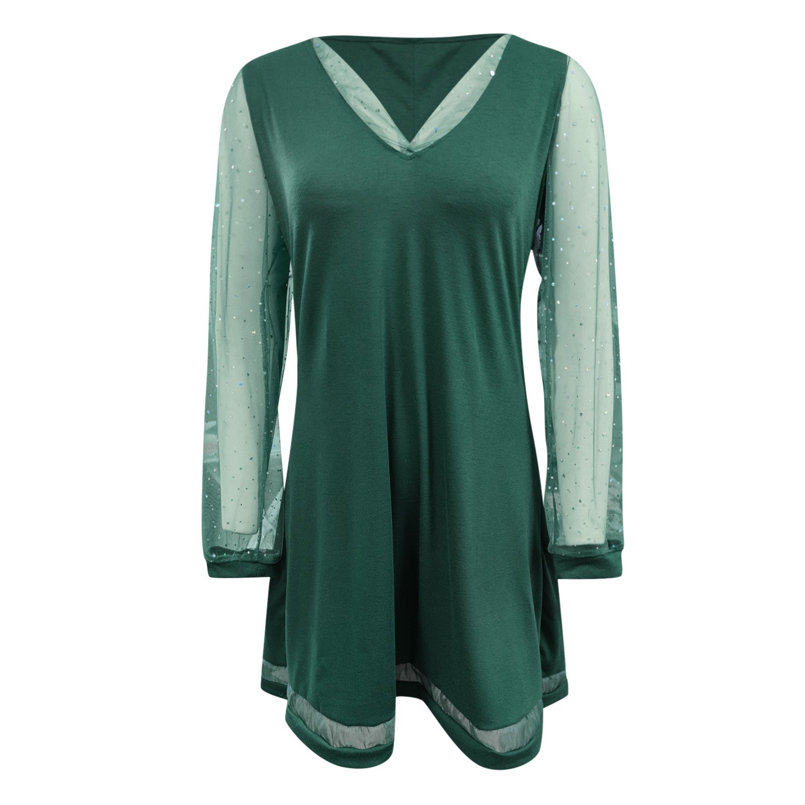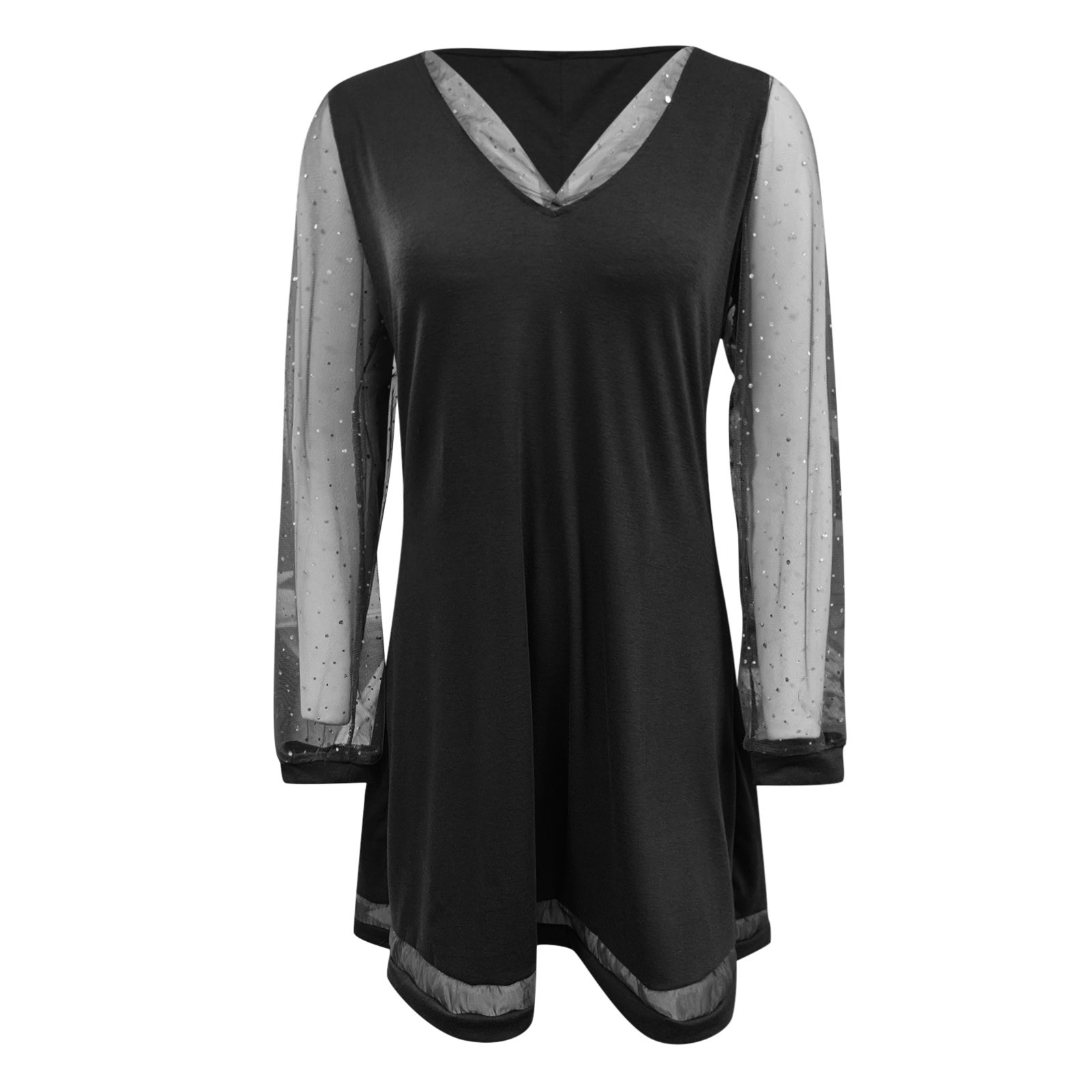 Женское модное однотонное Сетчатое платье с длинными рукавами и стразами, Свободный пуловер с v-образным вырезом, мини-платье
