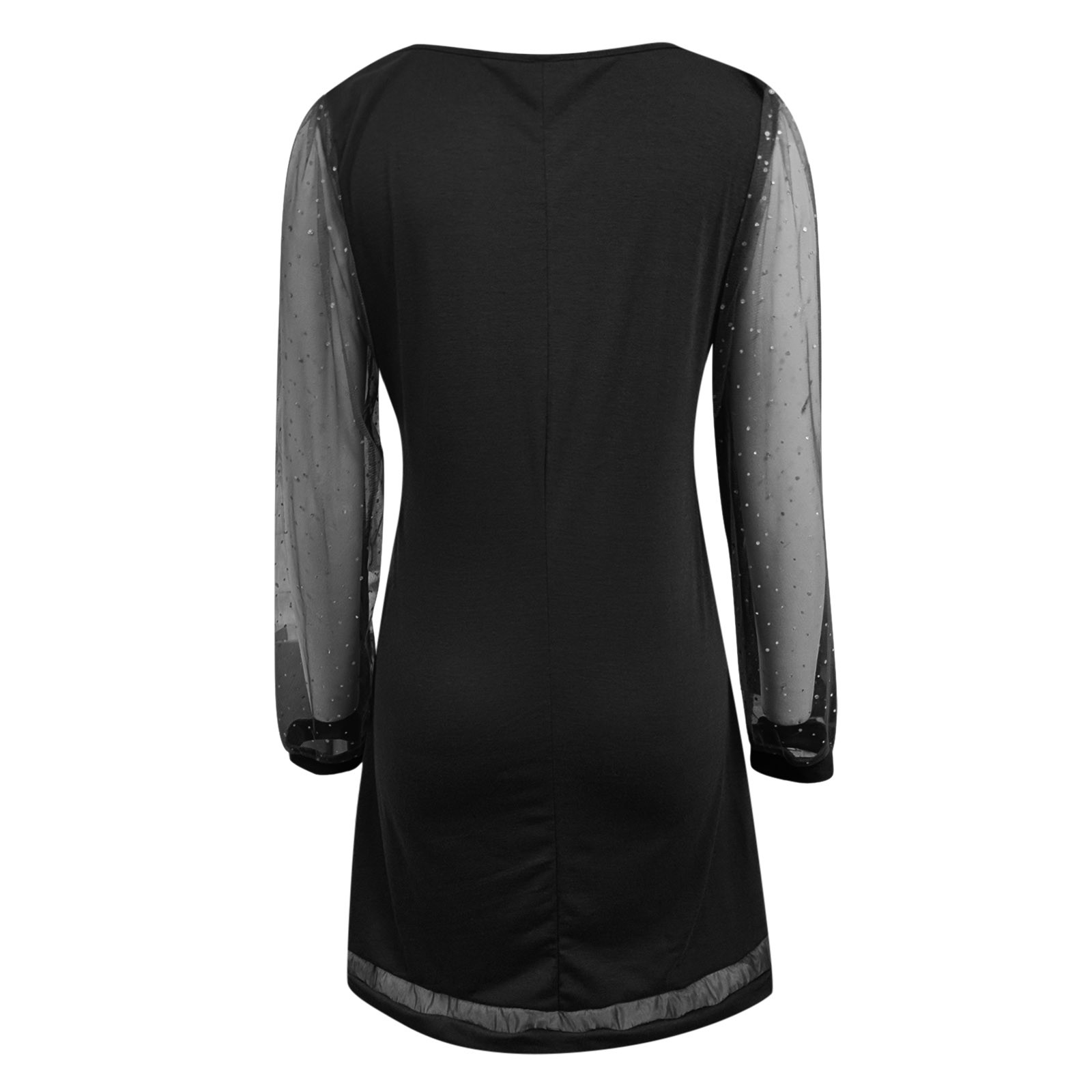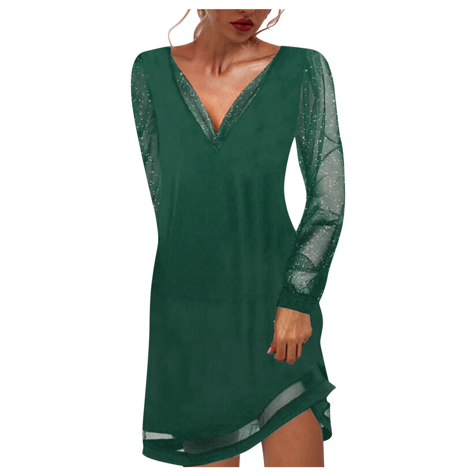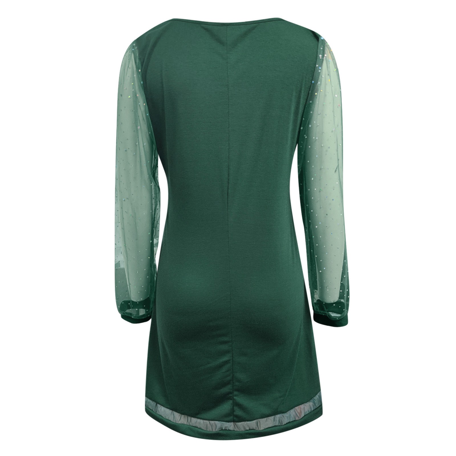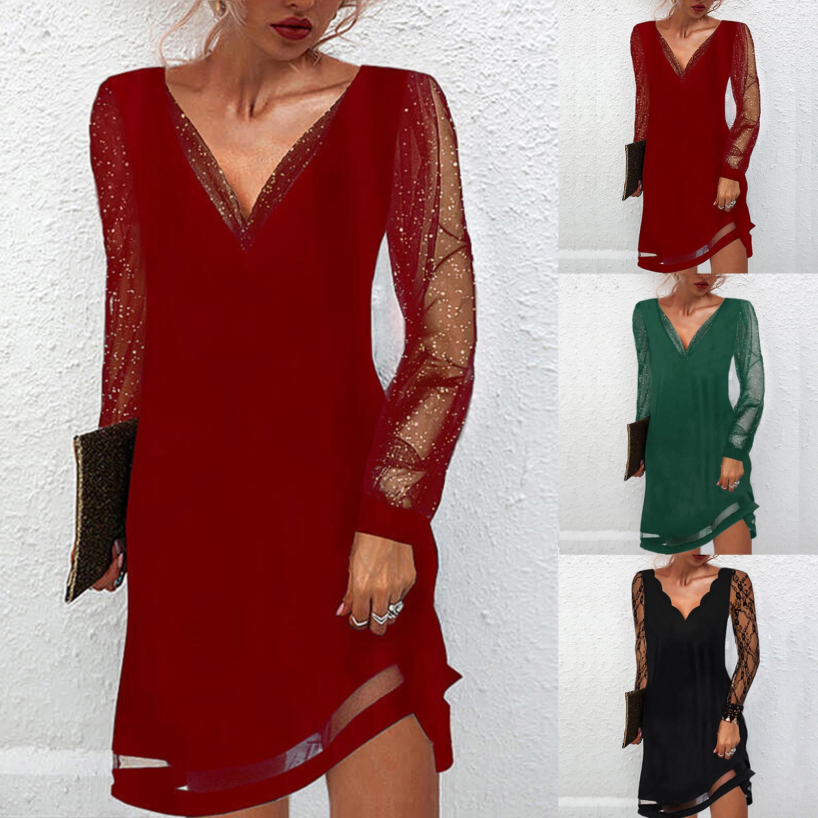 Женское модное однотонное Сетчатое платье с длинными рукавами и стразами, Свободный пуловер с v-образным вырезом, мини-платье