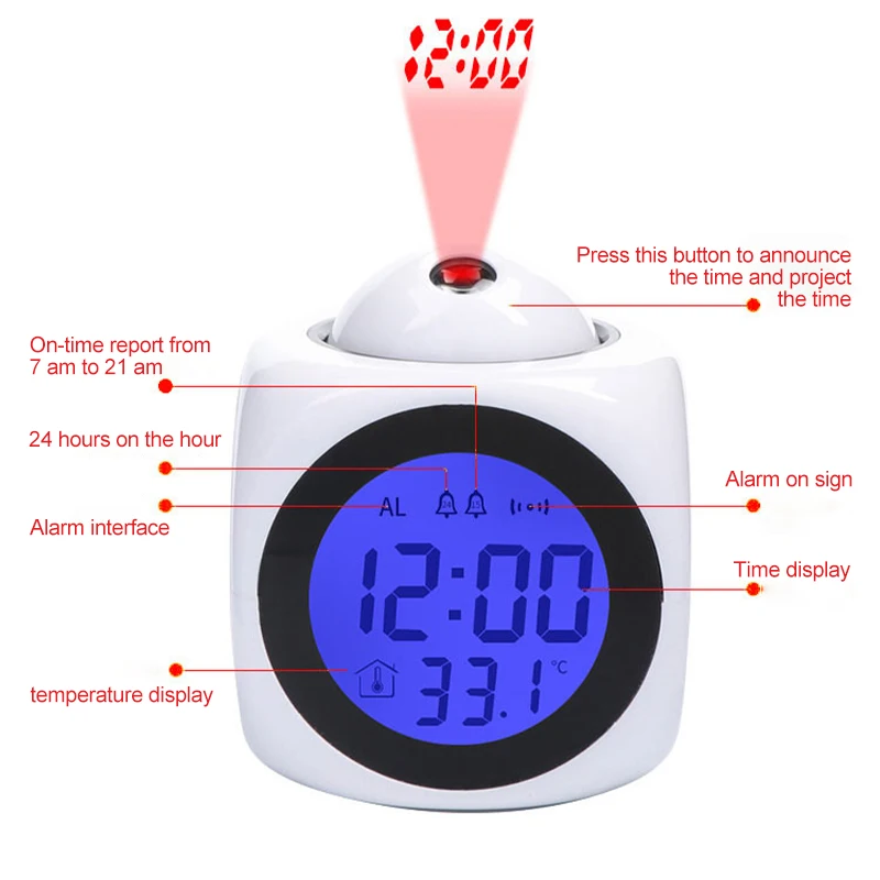 Функция s: функция проекции времени, функция голосового хронографа, время, функция отображения температуры, будильник, будильник повтора времени, функция часового хронографа