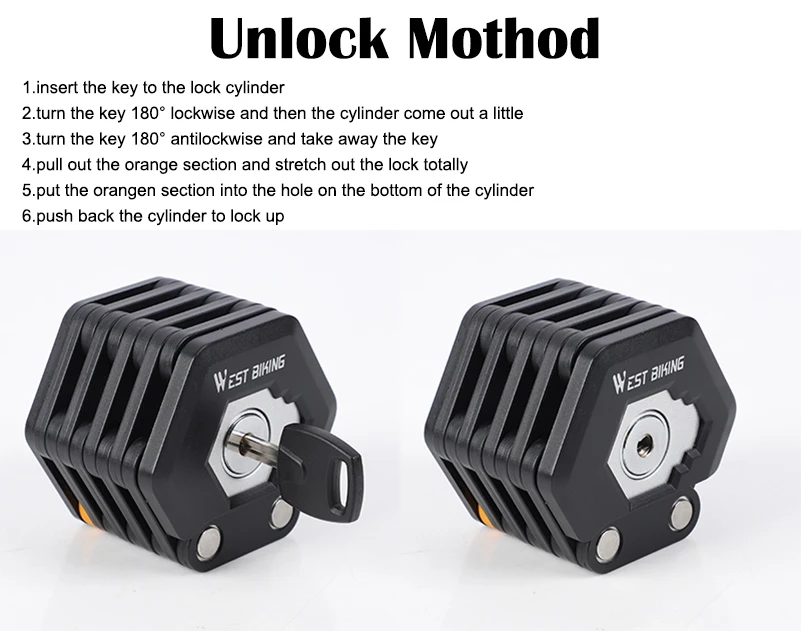 Складной замок с оранжевым ключом