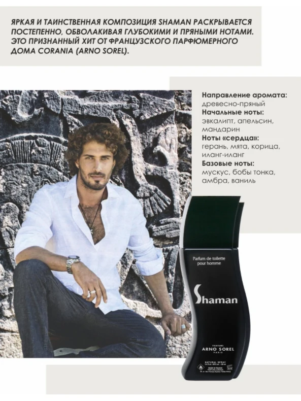 Популярнейший мужской древесно-пряный аромат Shaman. Точно выверенный дизайнерами изгиб флакона не только красив, но его невероятно удобно держать в руке.