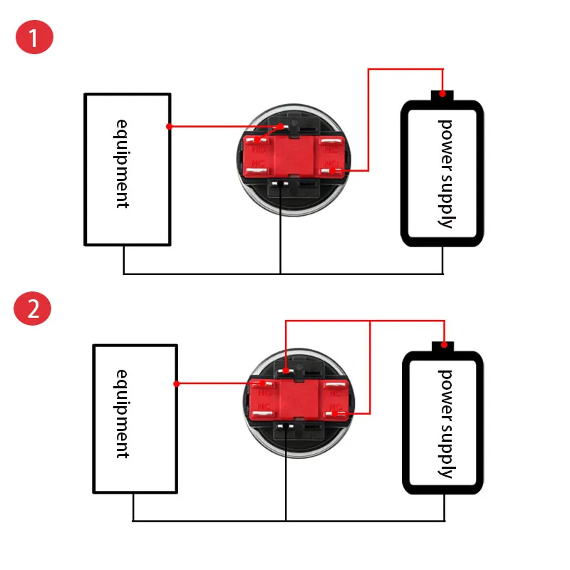 2. Подключение "nc" и "c": если кнопка не нажата, цепь всегда закрыта.