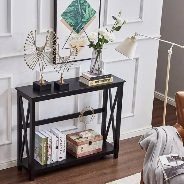Прочный и прочный: консольный стол изготовлен из высококачественного МДФ, который прослужит годами использования. X-образные структуры с обеих сторон обеспечивают стабильную поддержку, увеличивая эстетику, поэтому вы не беспокоитесь о тряске и деформации.