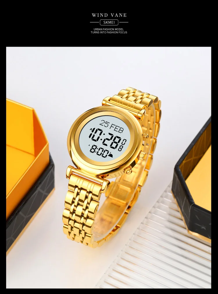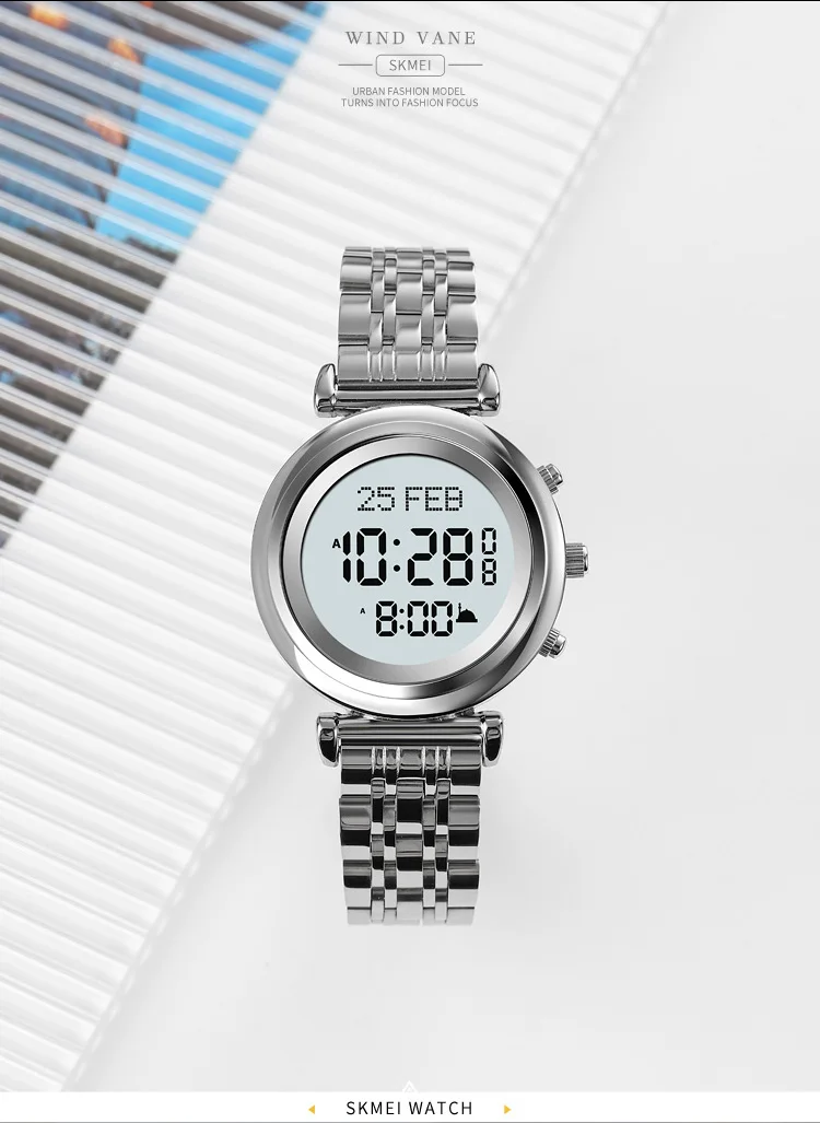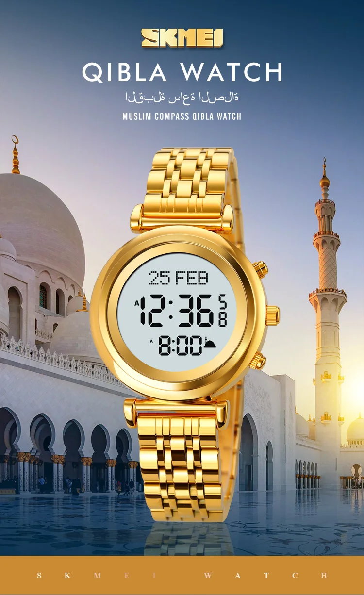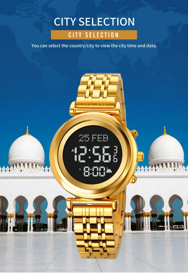 SKMEI Muslim Qibla Watch Men Adhan Alarm Clock Hijri Calendar Islamic Al Harameen Fajr Time Wristwatch For Mens reloj hombre 1892